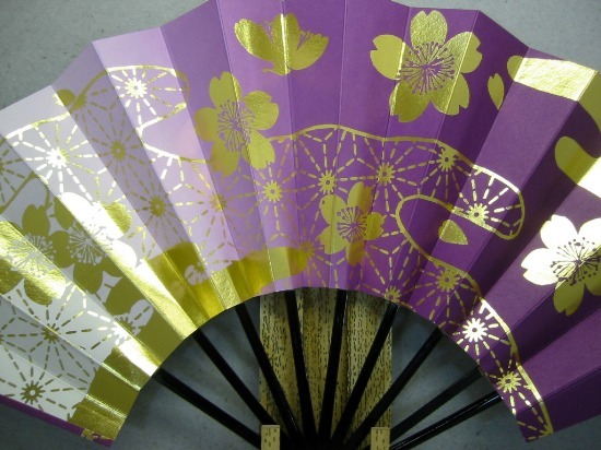 舞扇子 A1285 金箔 桜雲麻型 紫横ぼかし 【箱なし】