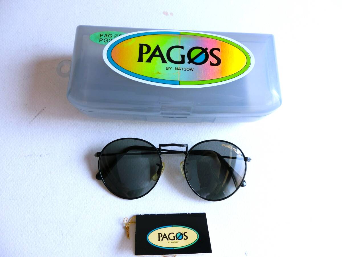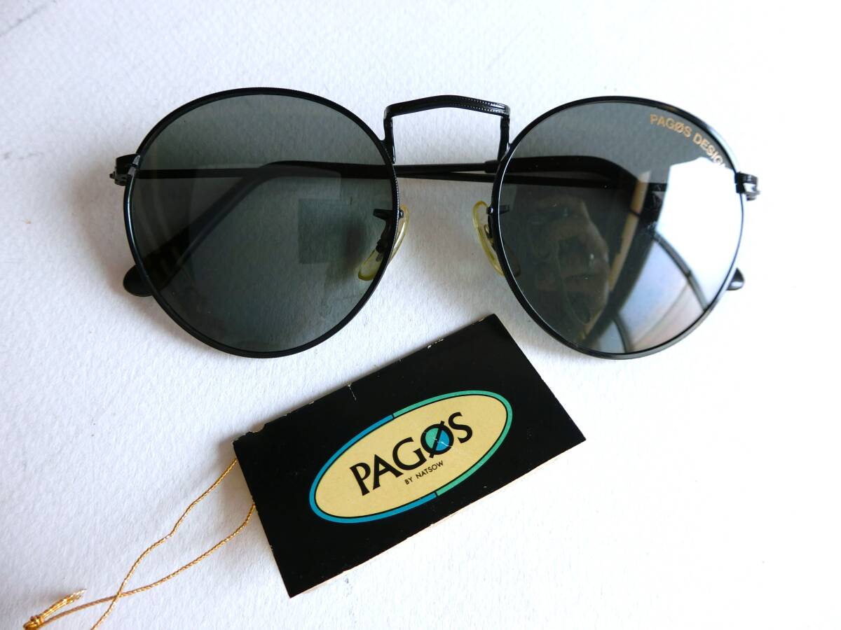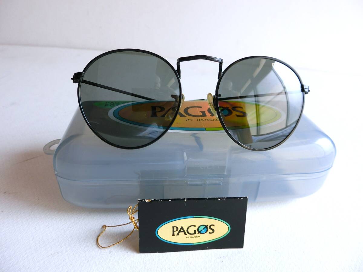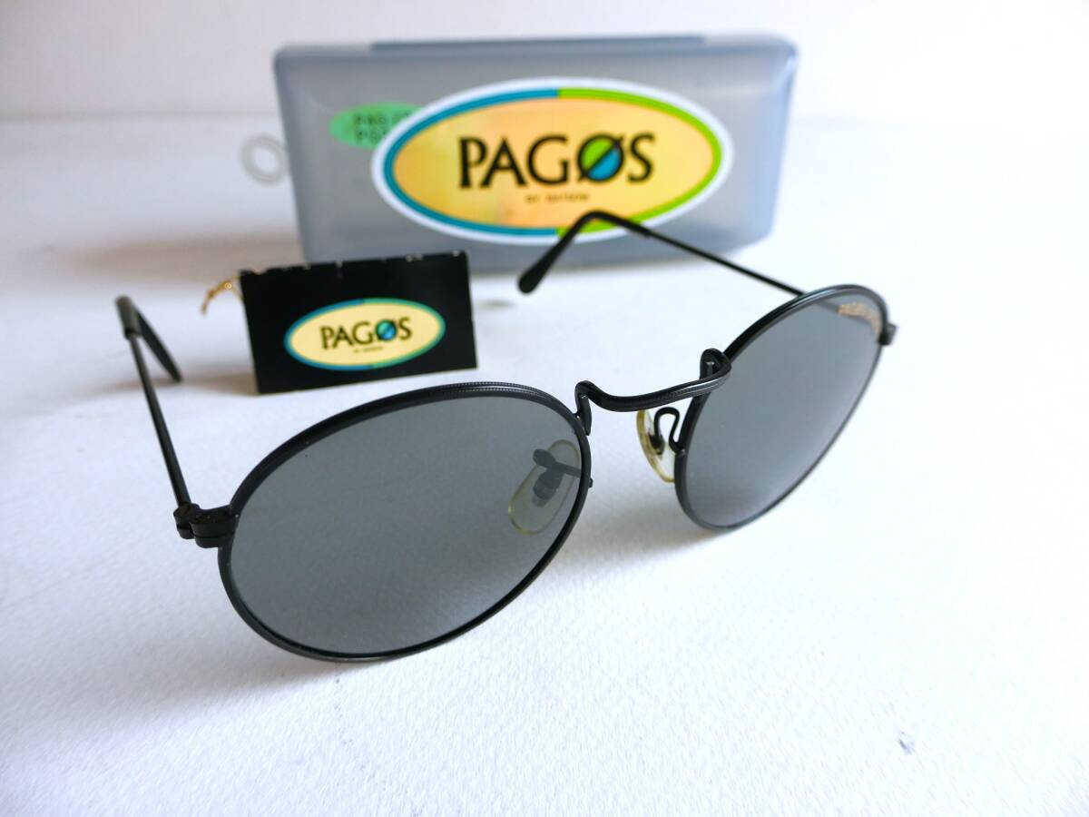 PAGOS DESIGN パゴス 偏向サングラス 黒縁 ラウンドフレーム 金属フレーム ケース付き 釣り具メーカー 丸眼鏡
