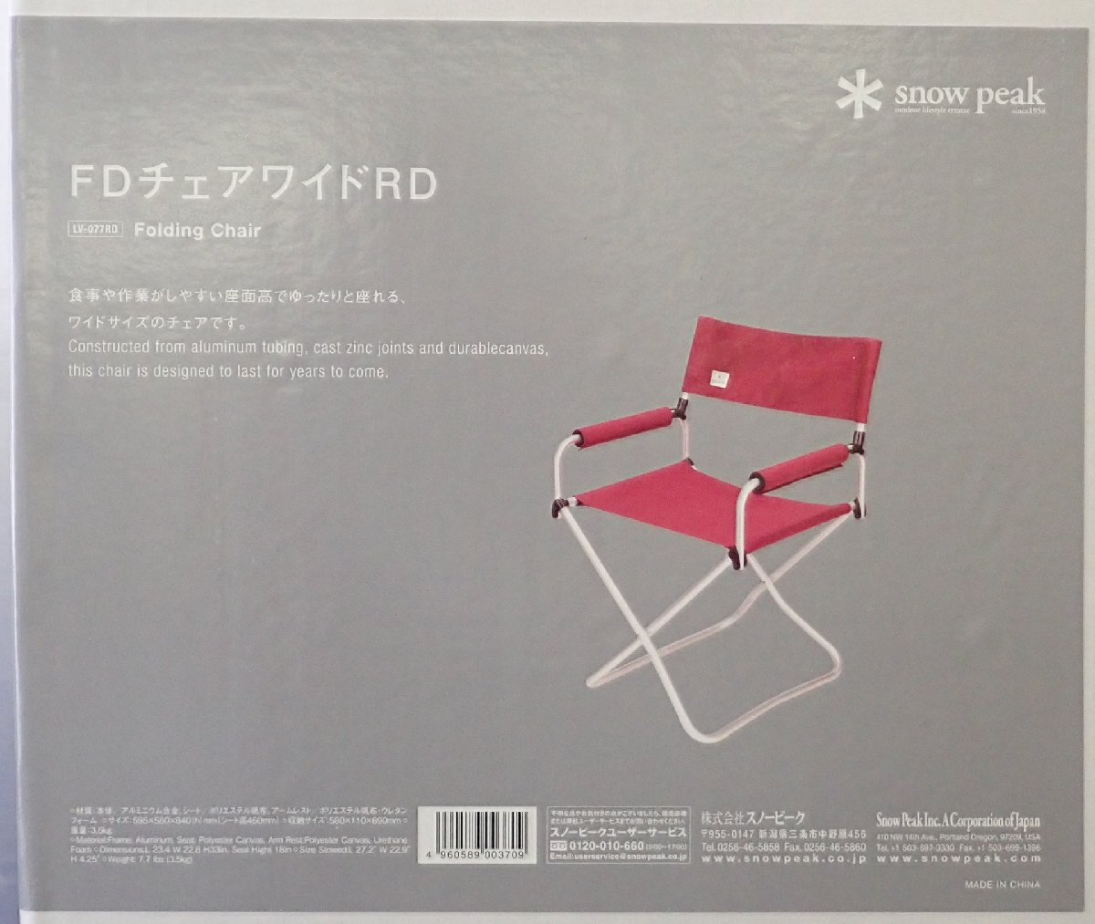 | ◎ 未使用 開封のみ Snow Peak スノーピーク FDチェアワイドRD LV-077RD アウトドア チェア | |