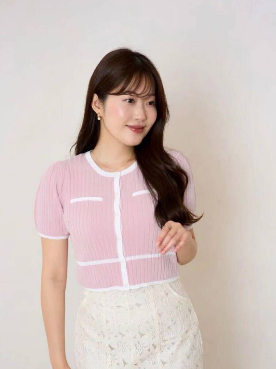 未使用級 トロワロゴバイカラーリブニット Trois Logo Bicolor Rib Knit 半袖 カーディガン リブニット 縁取り パイピング