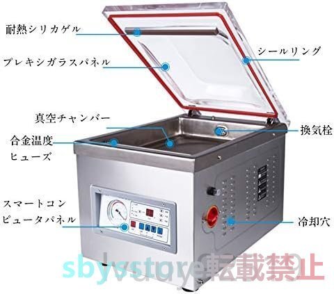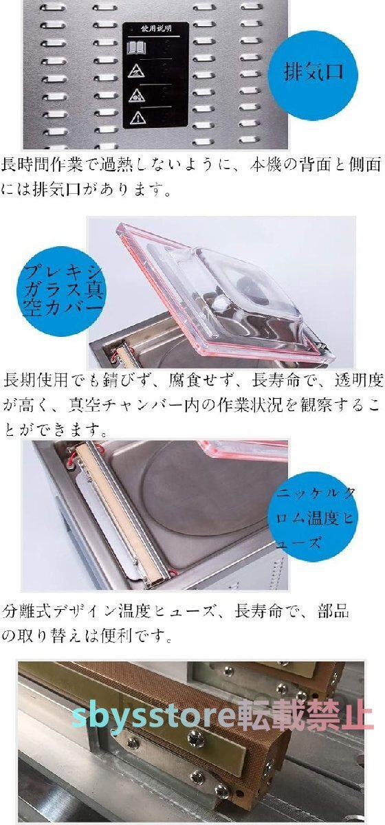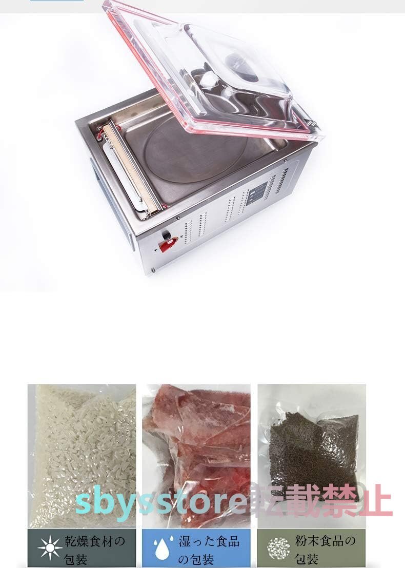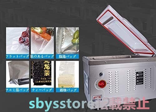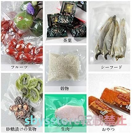 【特徴】:22inHGの強い真空吸引力、広い応用範囲、乾燥食材と湿った食品と粉末食品の3種類のシール機能、半真空シールでき、一度に複数の袋をシールすることができる、高効率、安全保護、ワンボタンシール、操作簡単