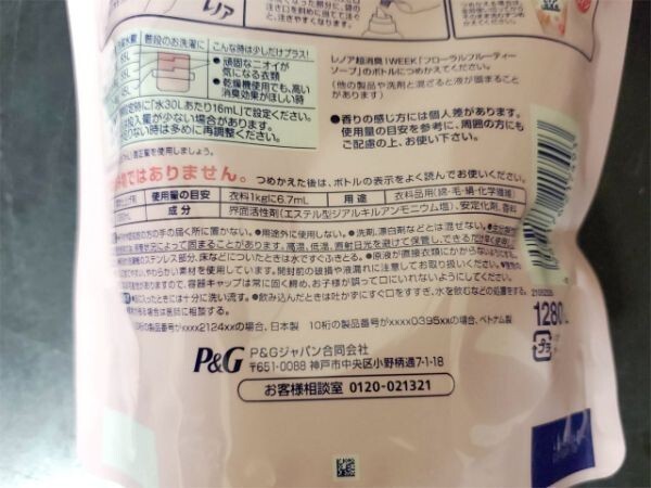 [1872-46]レノア 超消臭1week 柔軟剤 1280ml ×6袋 ケース みずみずしく香るフローラルフルーティーソープの香り つめかえ用 超特大サイズ