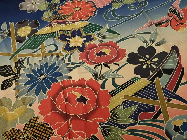 【正絹】 状態は接写画像のように後身頃・下前・衿山に薄い汚れがございますが その他特に目立ったシミ汚れなどもなく大変良い状態です。 紅型とは沖縄の伝統的な染物のことで、 型紙を使ったおおらかで自由な文様と、 南国らしい力強さがあふれる鮮やかな色彩が特徴的でございます。 「びん」は色、「かた」は模様のことを意味しており、 琉球王朝時代から、高貴な人々が身にまとったとされます。 創作工程の第一は、意匠を凝らした下絵を描き、 丁寧に型紙を彫ることから始まり、型紙を生地に伏せ、 糊で防染し、糊が置かれていない部分に手仕事で色を挿していきます。 染めた跡にまた糊を洗い落とし、今度は色を挿した部分に糊をおき、 残りを丹念に染めるという作業をコツコツと繰り返すことで 鮮やかな色彩が生まれていくのです。 大変上質な逸品になります。 お安く出品致しますので、是非この機会にいかがでしょうか? |