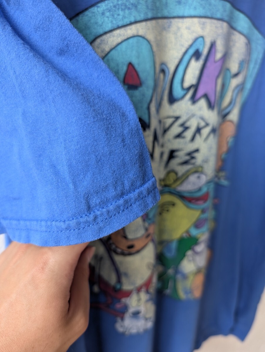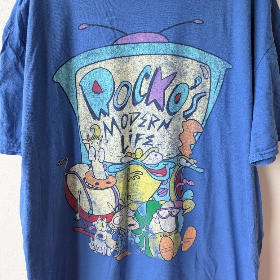 「ニコロデオン」Rock's MODERN LIFE(ロッコーのモダンライフ)というアメリカTVアニメのキャラクター達が前面にプリントされたおしゃれなTシャツになります。