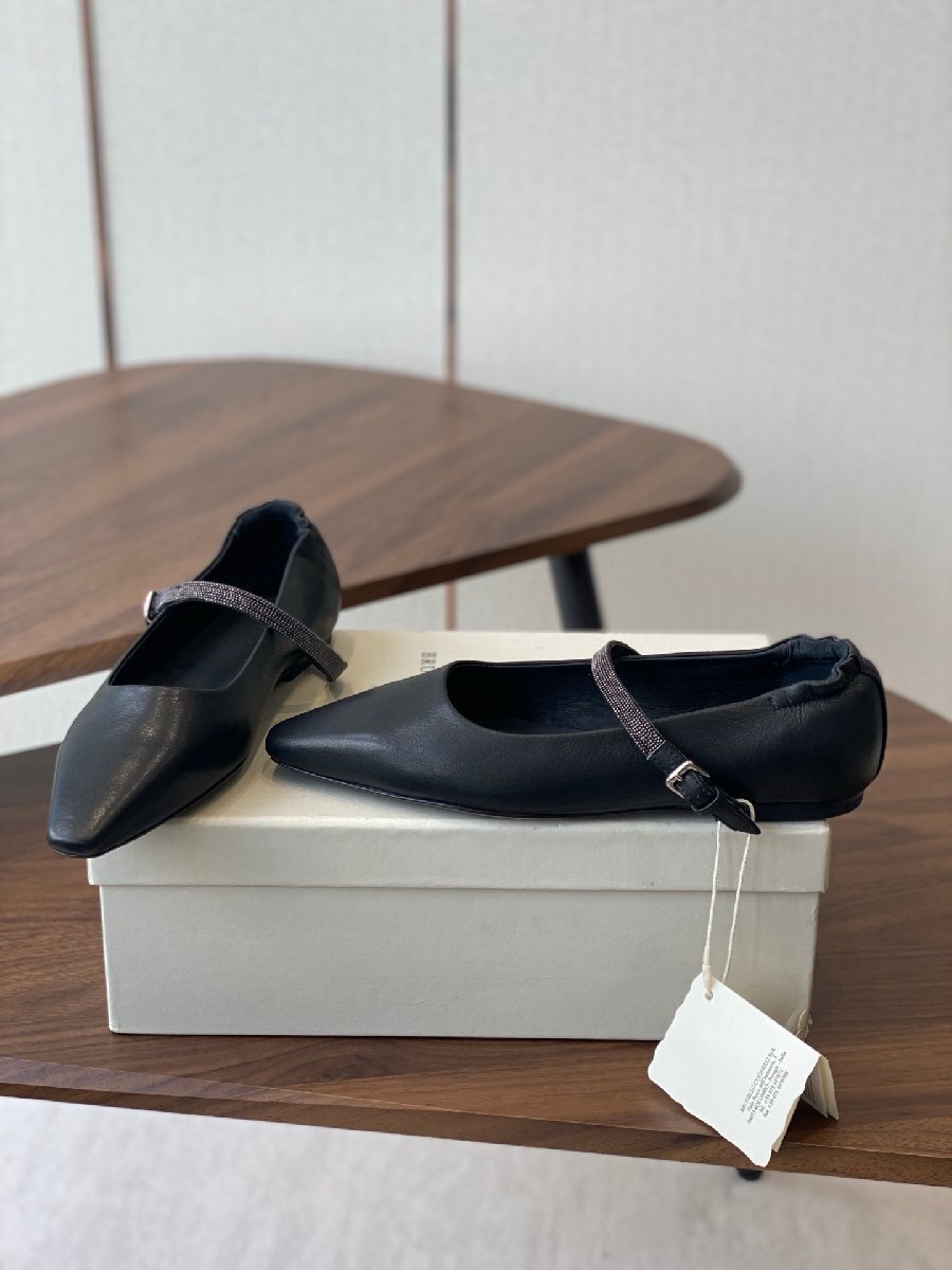洗練された美しさと快適さを兼ね備えたBRUNELLO CUCINELLIのフラットシューズ。上質な本革を使用し、スクエアトゥデザインが特徴的です。クラシカルでありながらモダンな印象を与えるホワイトカラーは、様々なスタイリングに調和します。足元をエレガントに演出するストラップ付きのデザインで、安定感のある履き心地を実現。イタリア製の本革ソールを採用し、上質な歩行感を提供します。インソールには柔らかな羊革を使用し、快適な履き心地を追求。オフィスからカジュアルまで幅広いシーンで活躍する、洗練された一足です。シンプルながら品格のある佇まいは、大人の女性の足元を上品に演出します。