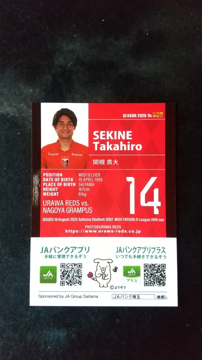 2025年の浦和レッズのマッチデーカードの関根貴大選手になります。カードスリーブと硬質のカードケースに入れて発送いたします。新品になりますのでノークレーム、ノーリターン、ノーキャンセルでお願いします。