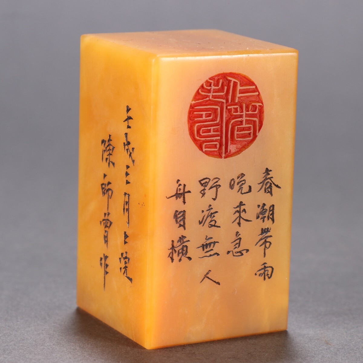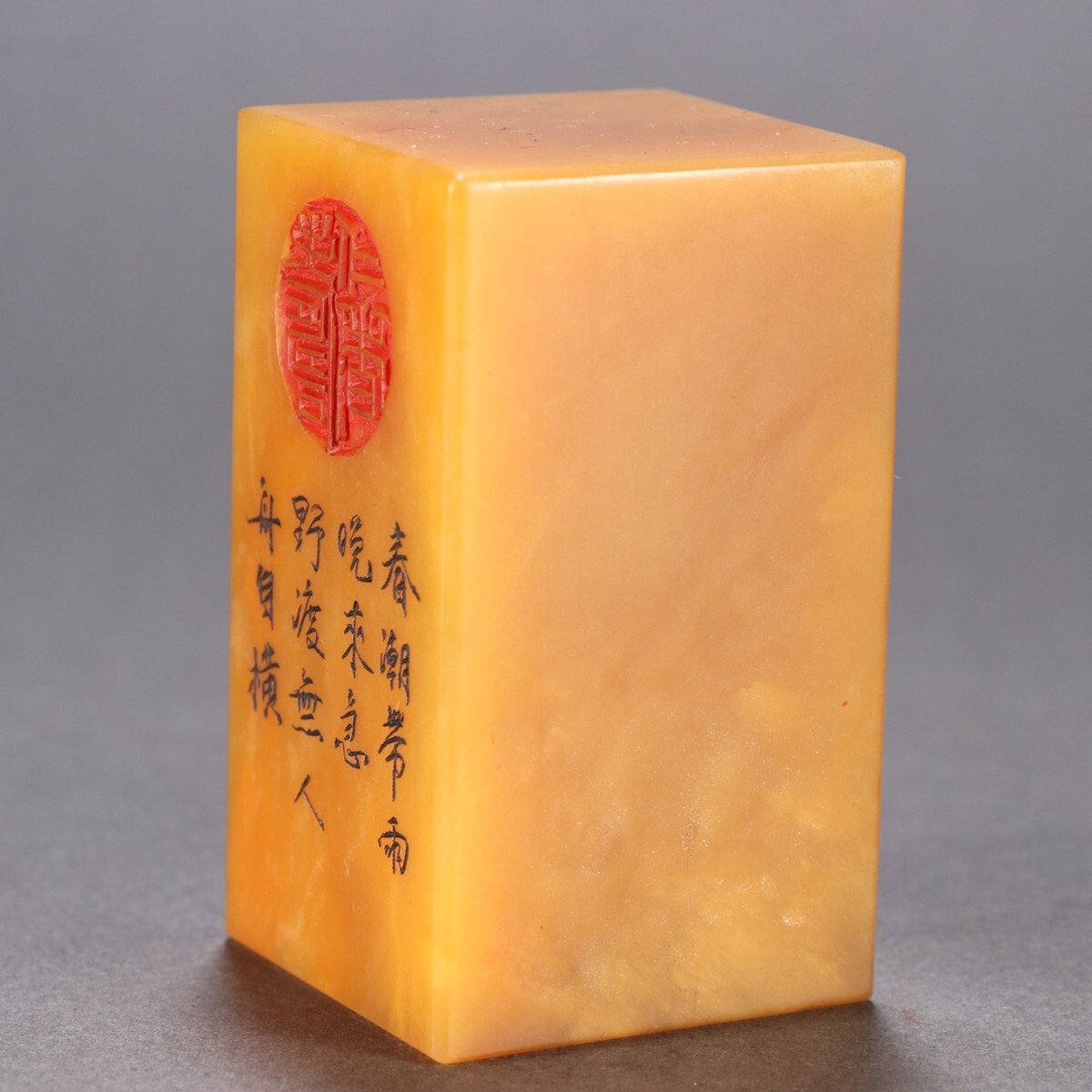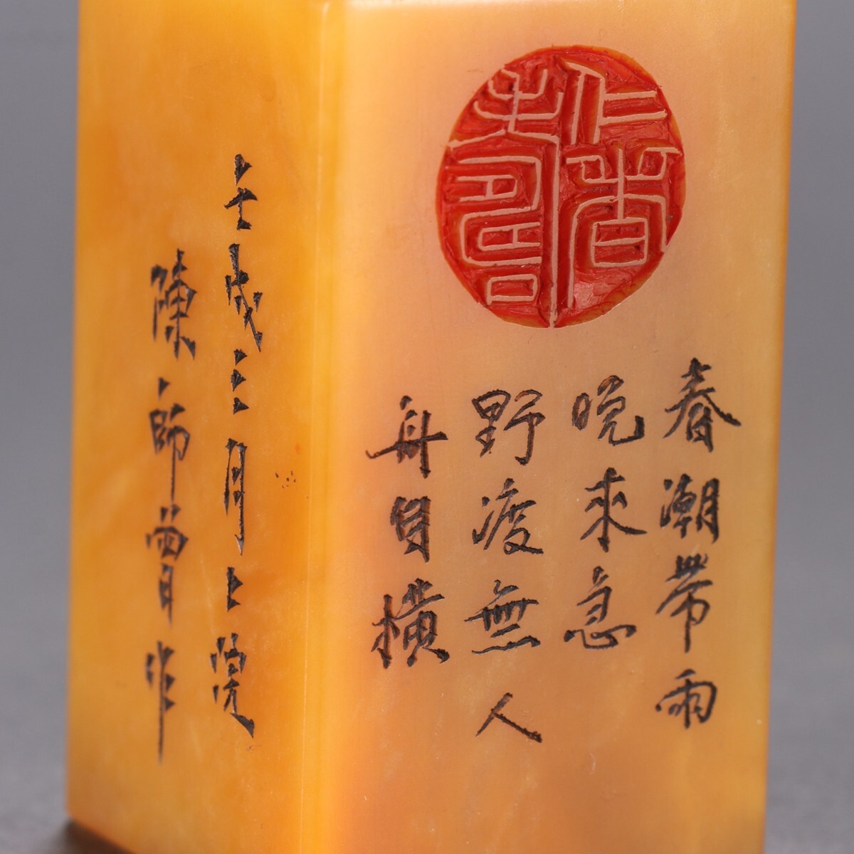 清代 陳師曾篆 老寿山石 田黄石彫 詩文方印【仁】極細工 手彫り 中国古賞物 古美術 蔵出