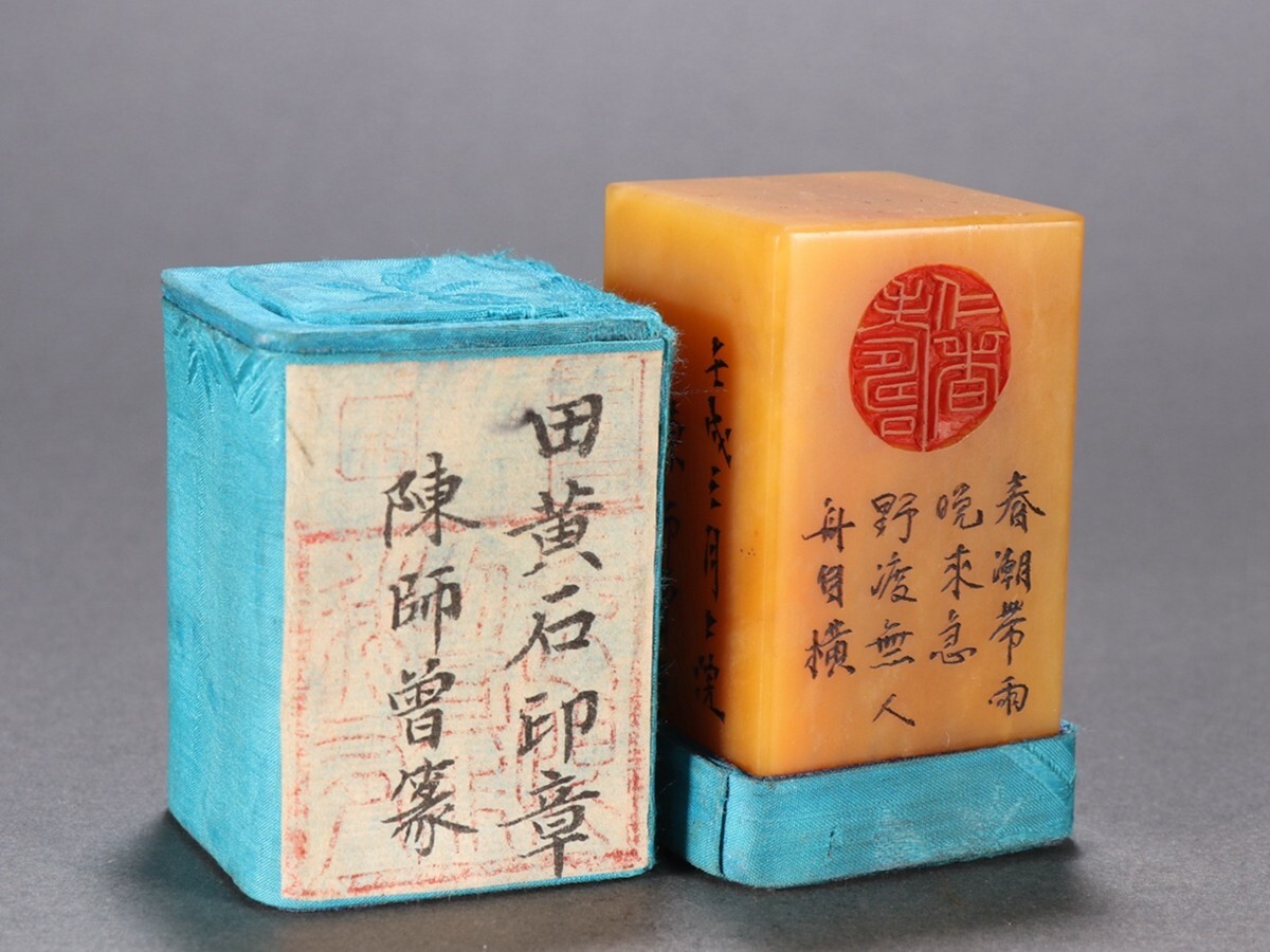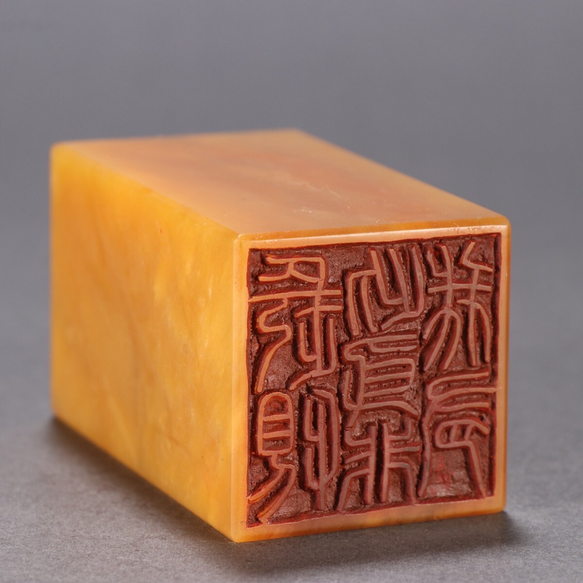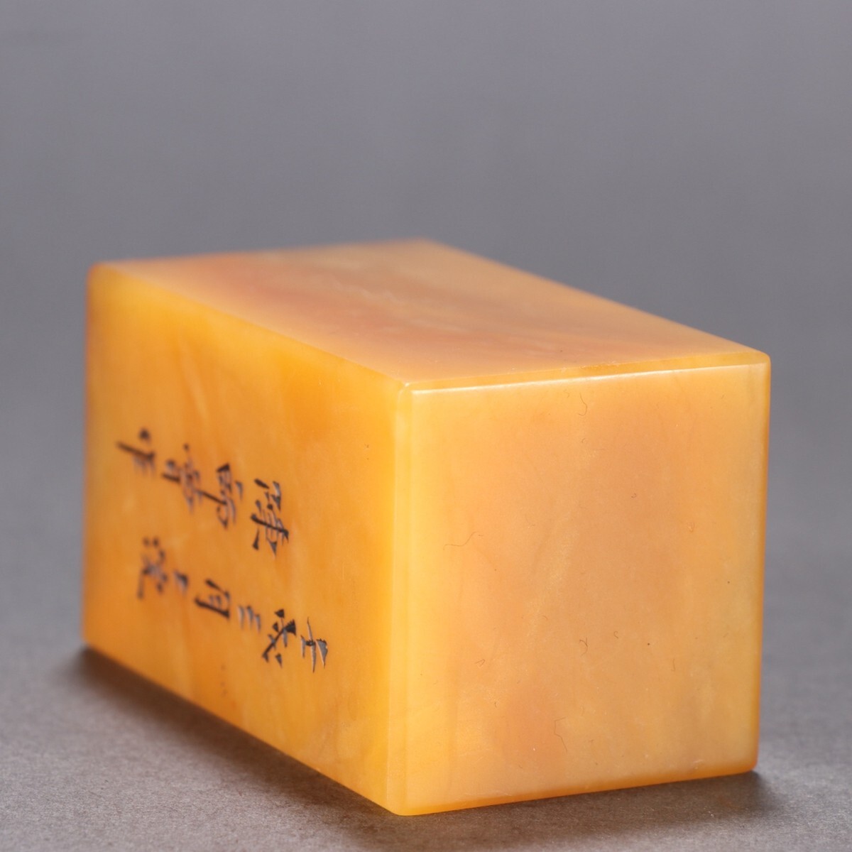 清代 陳師曾篆 老寿山石 田黄石彫 詩文方印【仁】極細工 手彫り 中国古賞物 古美術 蔵出
