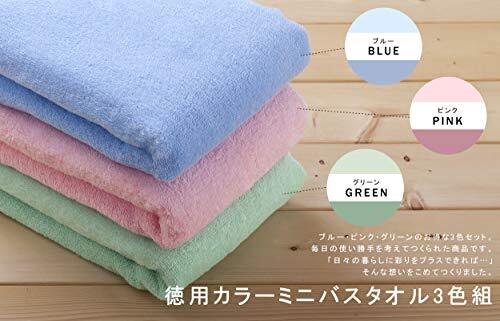 シンプル・3色 50×100cm ・・Size:50×100cmPatternName:徳用カラーミニバスタオル3色組・【ミニバスタオル3枚セット】サイズ:約50×100cm・素材:綿100%・生産国:中国・重量:約140g・カラー:ピンク、ブルー、グリーン(各1枚)【便利サイズ】ちょっと小さなショートサイズのバスタオル。サイズ約50×100cm。 【薄手タイプ】薄手で手軽に使える、ミニバスタオルです。 【コンパクトサイズ】バスタオルよりひとまわり小さなサイズです。普通のバスタオルとしても、お子様のバスタオルとしてもお使いください。コンパクトサイズなのでお洗濯でも場所をとらず。また、持ち運びにも便利なので旅行にも最適! 【リーズナブルな価格】お手ごろ価格のお徳用セット。 【小杉善のこだわり】あきのこない無地カラーの3色セット。丈夫なので業務用や一般のご家庭でもお使いになりやすいコストパフォーマンスの良いタオルです。 【リーズナブルな価格】お手ごろ価格のお徳用セット。