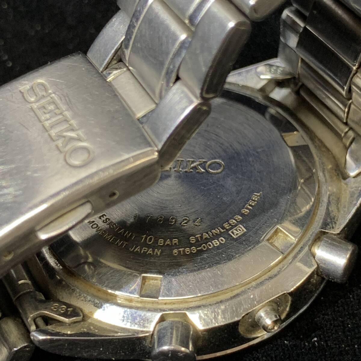 1円~ 6TN30880725 SEIKO セイコー クロノグラフ 100M 6T63-00B0 QZ クォーツ SS メンズ 腕時計 純正ベルト 動作未確認 現状品