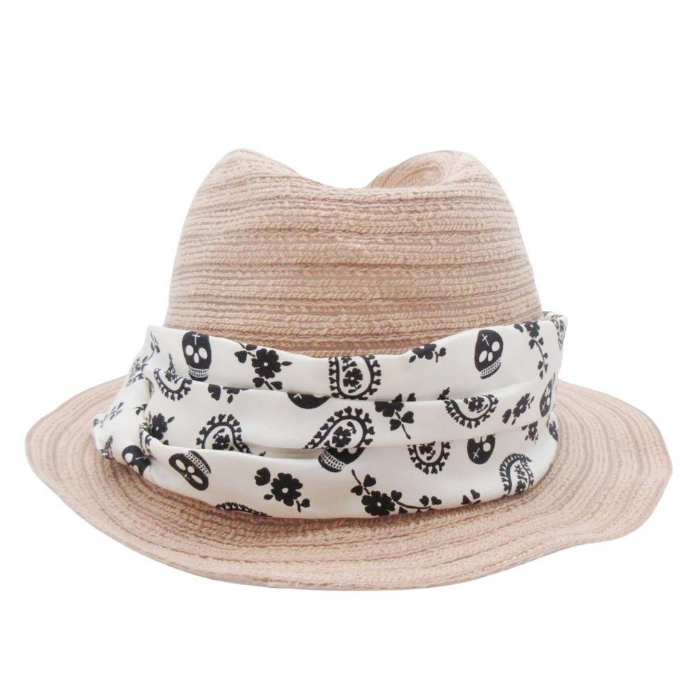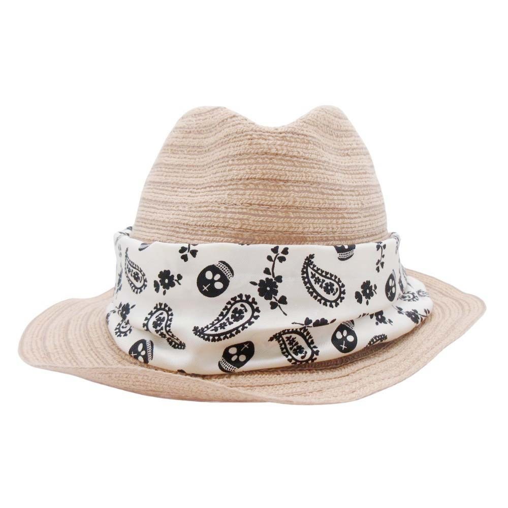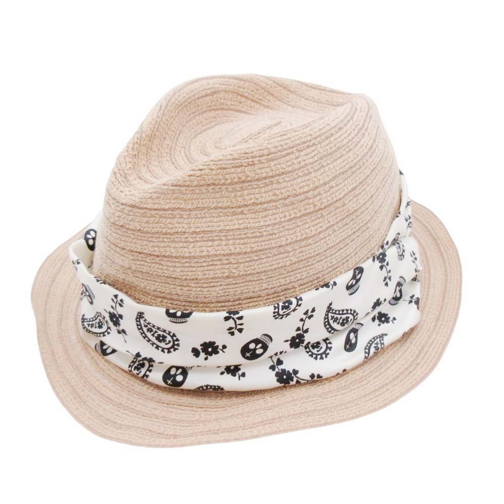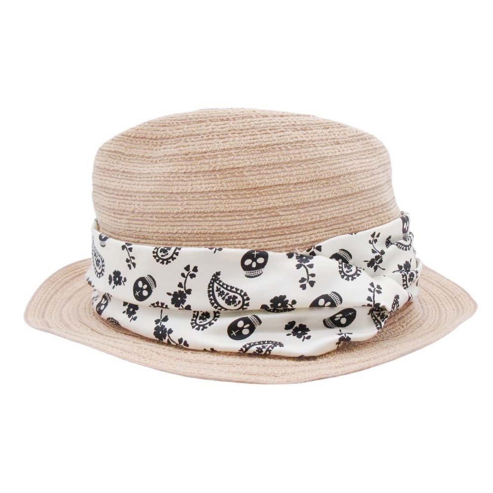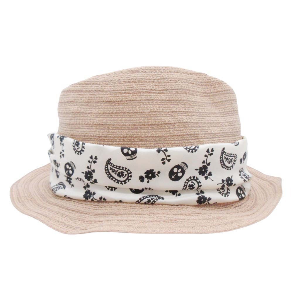美品 Rico ca4la リコ カシラ 中折れハット 帽子 コットン 透かし編み スカル×ペイズリー バンダナ ベージュ
