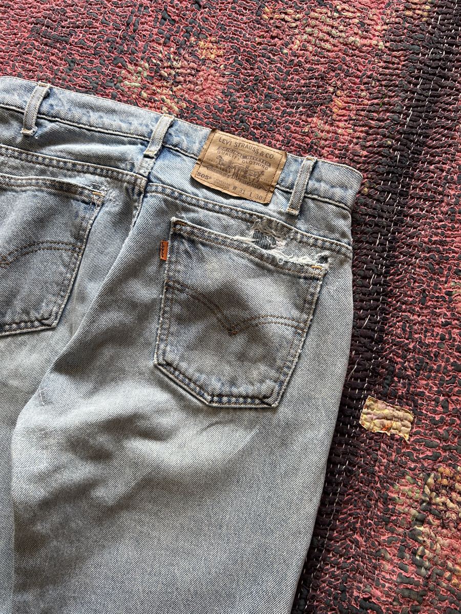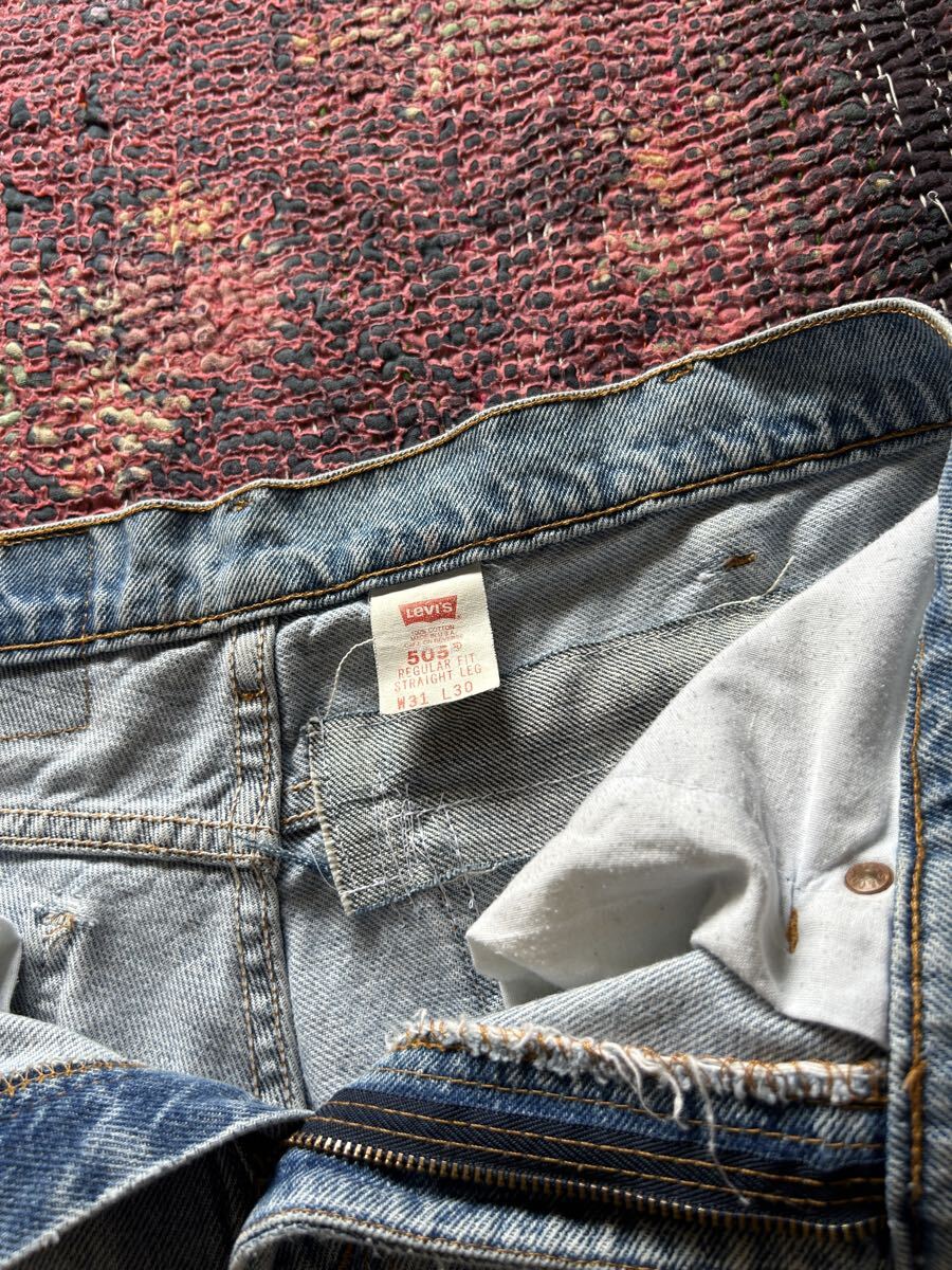 LEVI’S 505 PATCHED & REPAIRED, FADED LIGHT WASH / ’95