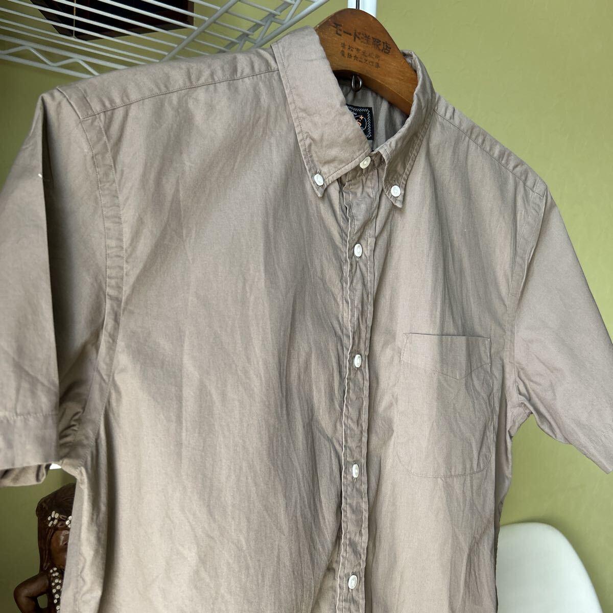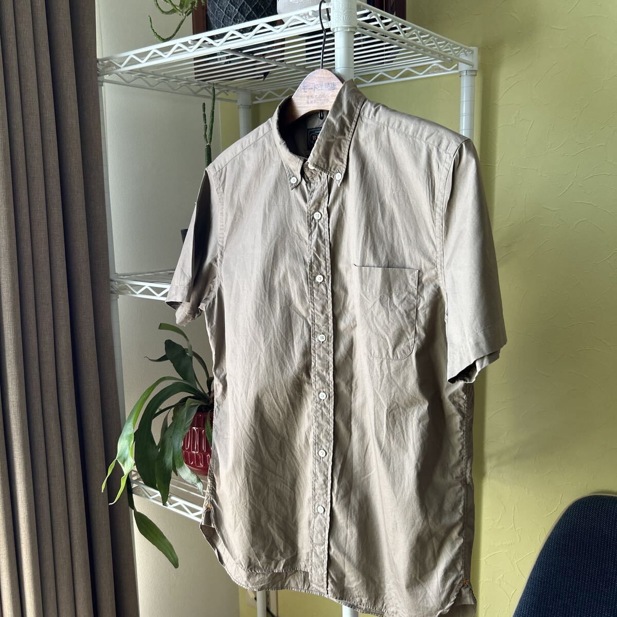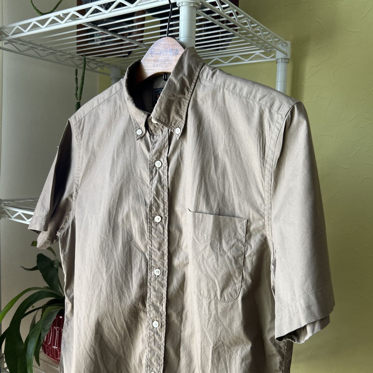 多少の誤差はお許しください。良い雰囲気です。日本製 張りがある綿100 マットなこげ茶 ボタンダウン マチ付き できる限りダメージは説明させていただきますが、こちらが気づかない程度のわずかなしみ、よごれ、