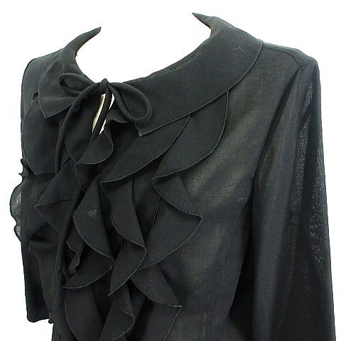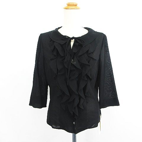 未使用品 49アベニュー ジュンコシマダ 49AV. junko shimada ブラウス シャツ 七分袖 フリル ウール混 40 ブラック ※EKM レディース