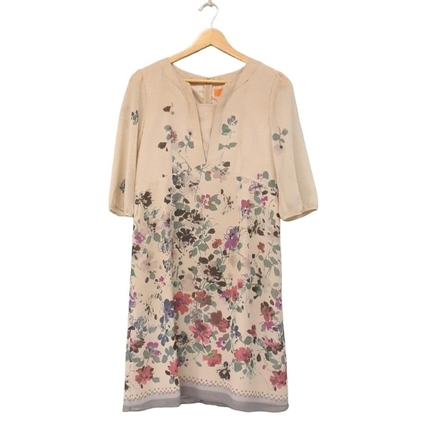 スーナウーナ SunaUna サイズ38 M - ベージュ×ピンク×マルチ レディース 半袖/ひざ丈/花柄 美品 ワンピース
