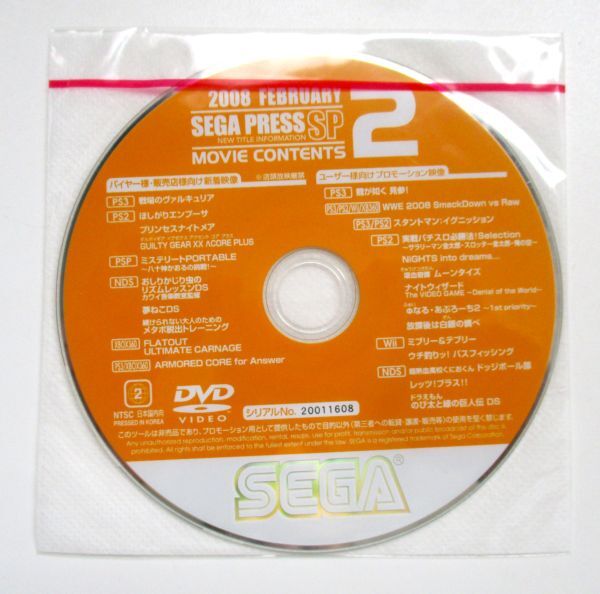 セガプレスSP 2008/2 ドラえもん/FLATOUT/ARMORED CORE for Answer/龍が如く見参/ 店頭 プロモ 販促 DVD