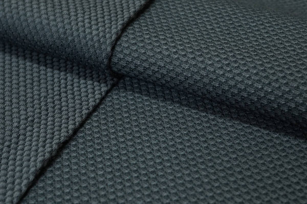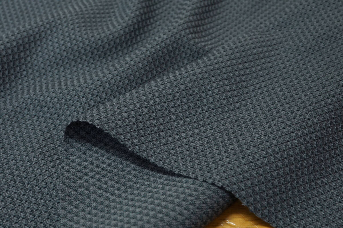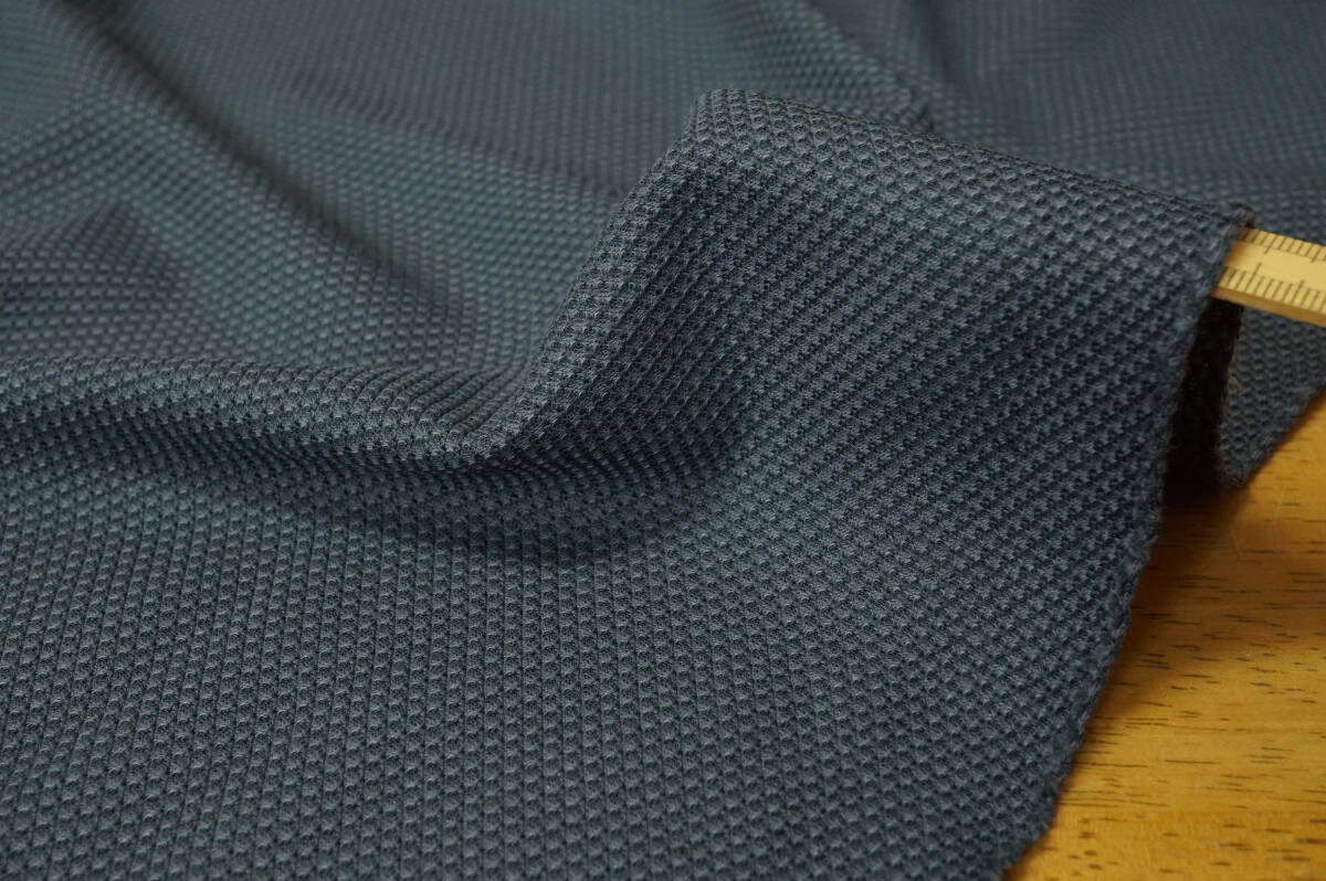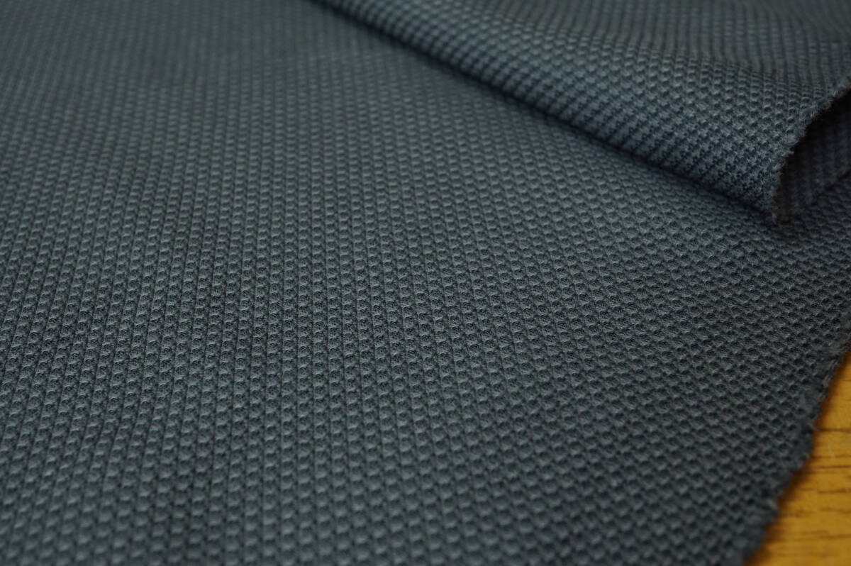 綿ポリエステル混、少し透け感のある微薄~やや中厚地(一般的なポロシャツ程度)で、硬さなどは無く、程よい柔らかさで、巾方向に少し伸びがあり、さらっとした肌触りでございます。