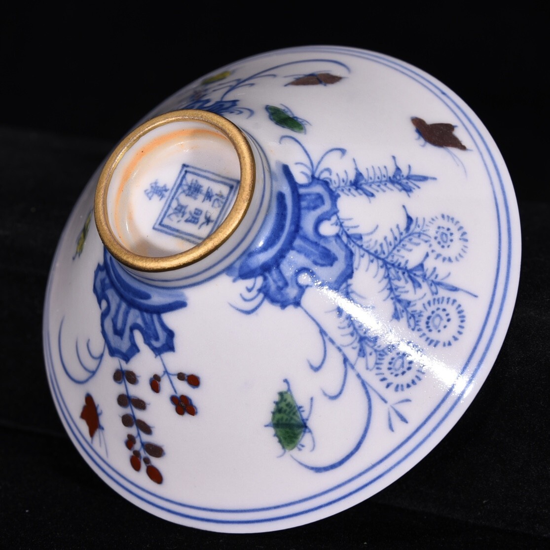 永し 明時代 大明成化年製 紅胎斗彩塗金 三秋斗笠杯 一対 古陶磁器 陶芸 皿 中国陶瓷器 唐瓷 置物擺件 古美術品 古賞物 旧家蔵出 中国唐物