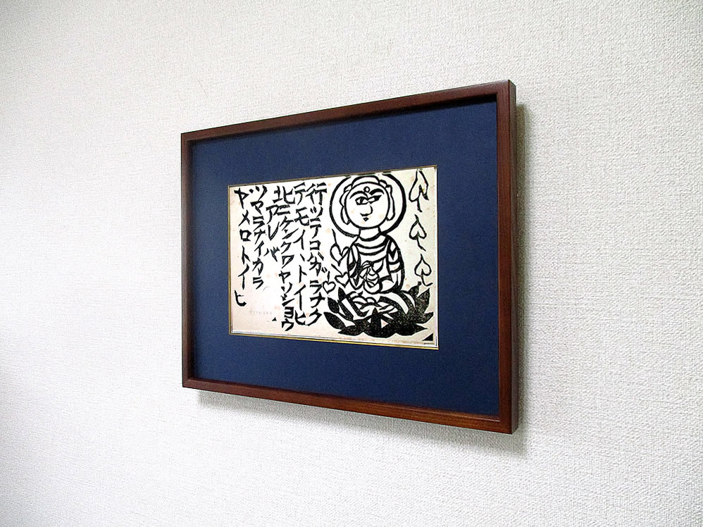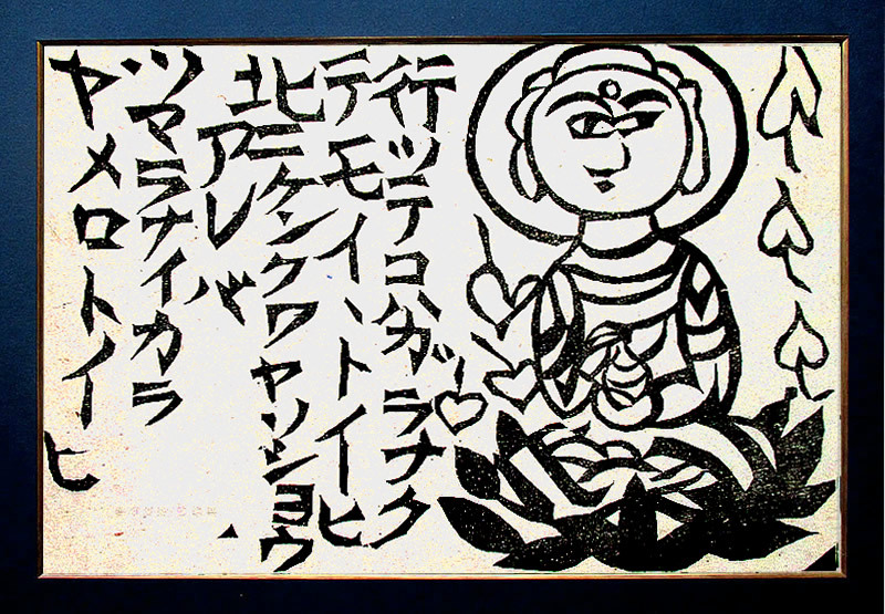 ■◇■棟方志功・ 自刻 木版画【 藥師如來・御寶珠 】昭和19年作 宮沢賢治の詩『雨にも負けず・・』の一節 額付 [真作保証]■◇■