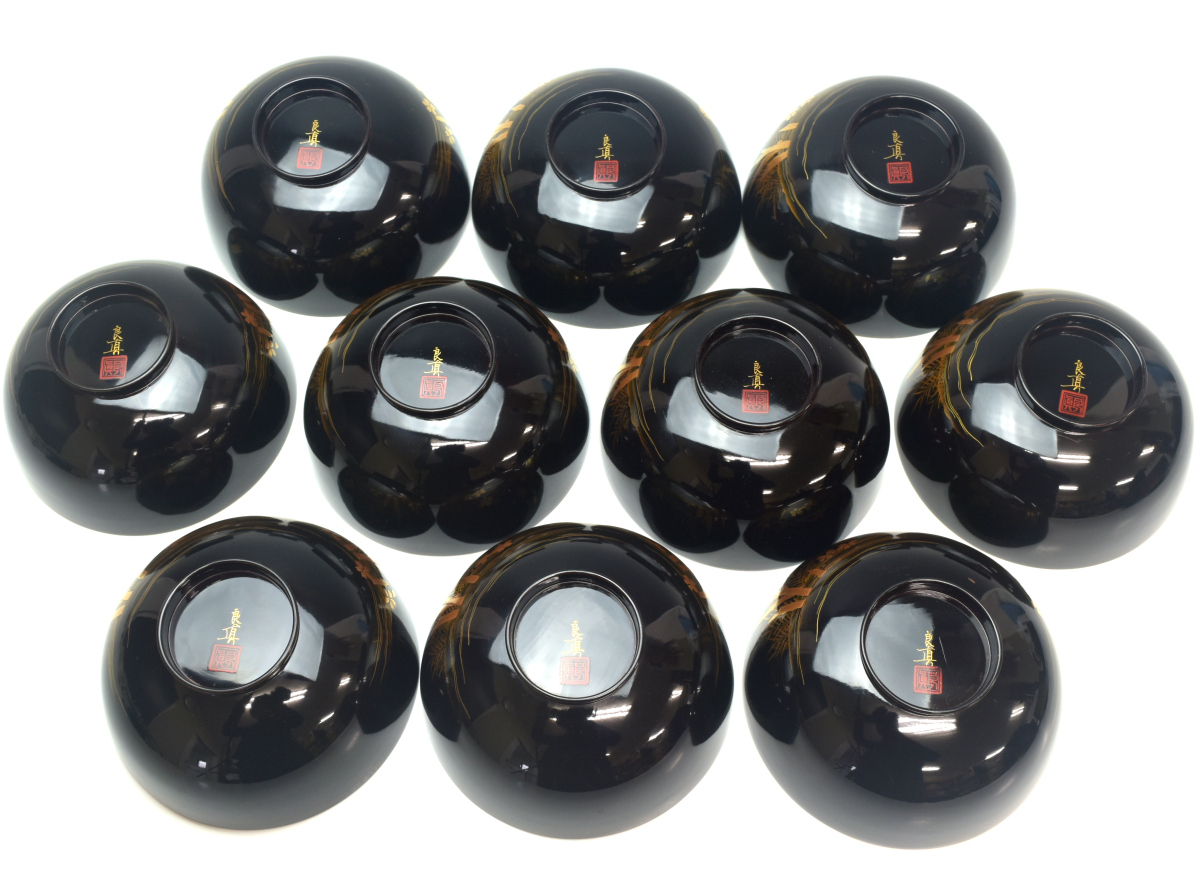 | 商品名 | 蒔絵 桜蒔絵吸物椀十客 良真作 直径 12. 2cm 木地 希少 細密上質蒔絵 江戸時代 本物保証 Z2151【趣楽】 | ||