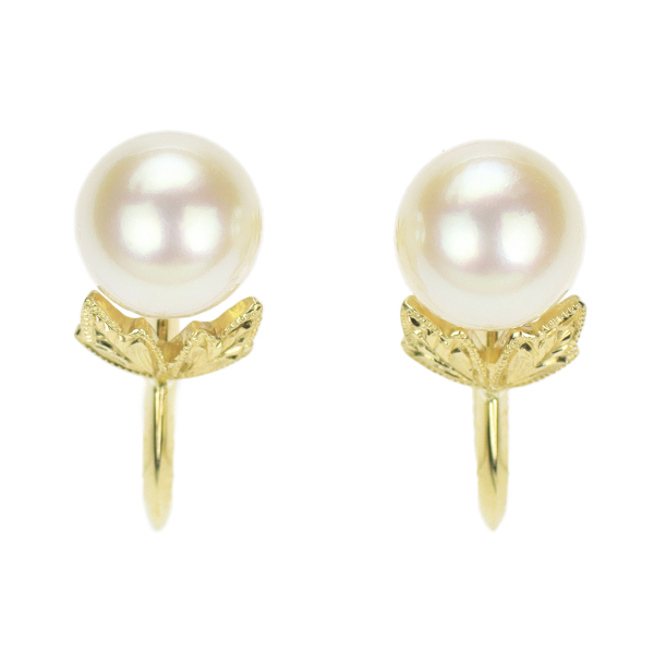 | 商品説明 | 径約6.7mmのアコヤ真珠を飾った、ミキモトのK14イエローゴールドイヤリング。 パールは、特有の地肌の荒れなどがほとんど見られない、ほんのりとピンク色を纏うテリのあるホワイトカラーのものがセレクトされています。 リーフモチーフが象られた、どこか懐かしさのあるデザイン。 清楚な輝きのアコヤ真珠を、ぜひカジュアルにお楽しみください。 |