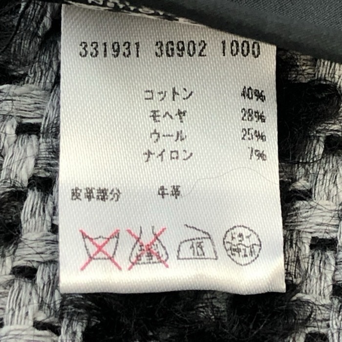 商品説明 | 【素材】コットン40%モヘヤ28%ウール25%ナイロン7% 皮革部分:牛革 【季節】秋冬 【商品補足説明】※サイズは平置採寸です。サイズ表記なし。 |