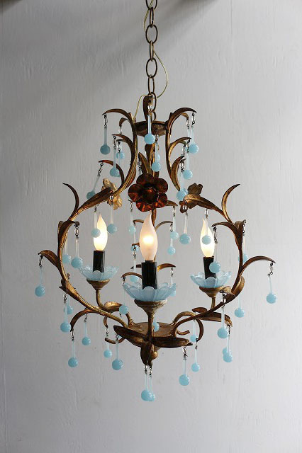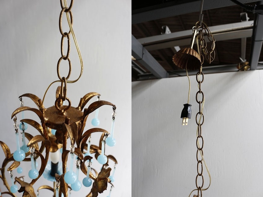 商品説明 岡山STAGEから出品します。フランスで買い付けたアンティークのオパリンガラス 3灯 メタルシャンデリアです。オパリンガラスは、乳白色で半透明なガラスのことです。19世紀にフランスのナポレオン3世の時代に装飾品として多く用いられ、特に1900〜1930年頃に多く製造されておりました。オパールのような光沢と、磁器のような質感を持つことから当時は高級品として扱われておりました。ブルーオパリンガラスとメタルのフラワーやリーフ装飾が大変いい雰囲気です。電球を取り付けるソケット、コード、コンセントプラグは雰囲気を損なわぬよう新しいものに交換してあります。また電球は付属しませんがE12mm口径ですのでご用意ください。状態ですが、錆等の金属特有の劣化、くすみ、汚れ、擦れや小傷、若干の歪み、小さな欠け、塗装劣化等の使用感はありますが照明として使用に差し支えがでるような目立つダメージもなく良い状態かと思います。ただあくまでアンティークになりますのでご理解いただける方のご購入をお願いします。 サイズ 全長約53cm(チェーン含まず)、横幅約34cm、奥行き約36cmになります。 発送方法 保障の利く佐川急便の元払い160cmサイズ料金で行います。 コメント もともとのチェーンが現状の長さのみになります。コードの長さ調整にともなう別のチェーンに取り換える場合は1m当たり1,100円で調整させていただきます。コンセント式ですので別途770円でシーリング仕様への交換もいたしますのでお気軽にご相談ください。店頭でも販売しております。タッチの差で売り切れた場合はご了承下さい。よろしくお願いします。 STAGEホームページ https://www.stage-stage.com/ |