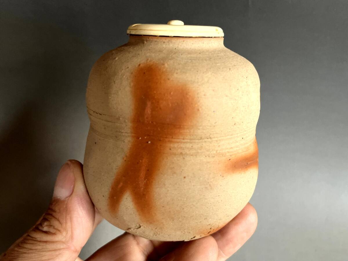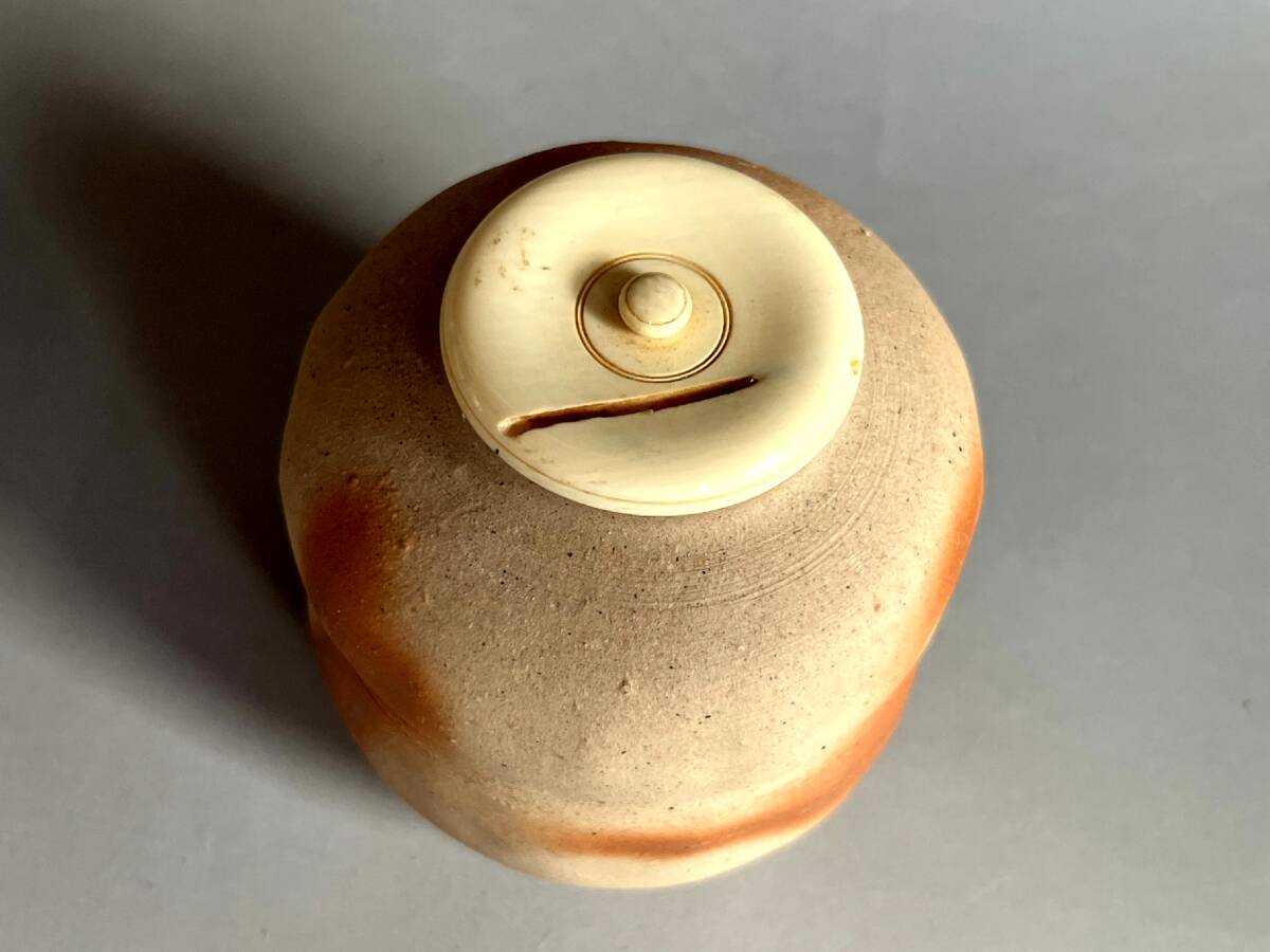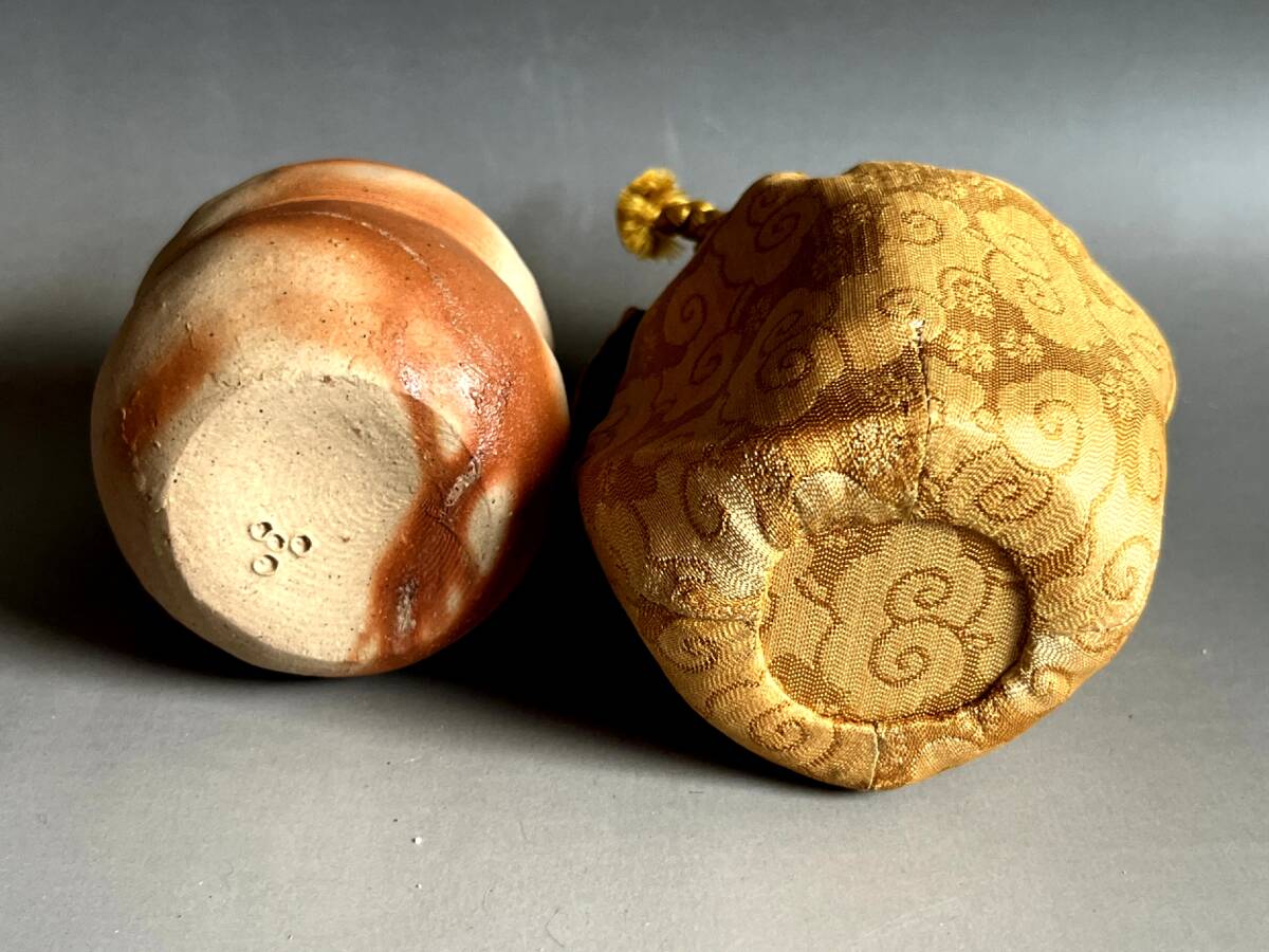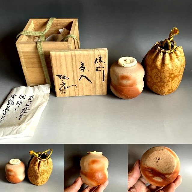 茶入れ■備前焼き 岸本昭彦 茶入布袋銅締め雲龍花文ドンス 共箱 お茶道具 古美術 時代物 骨董品■