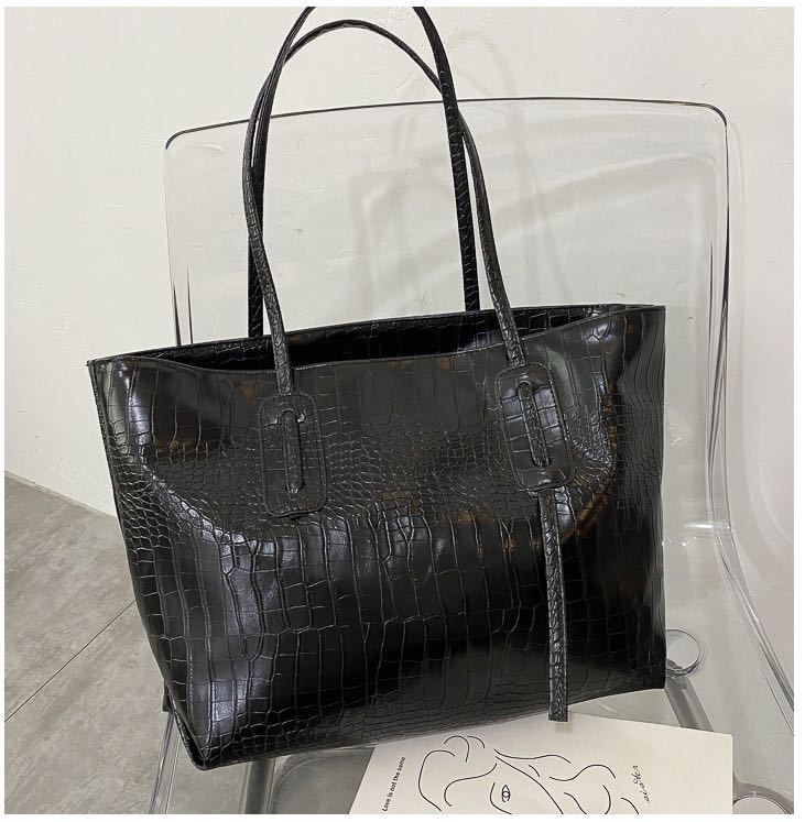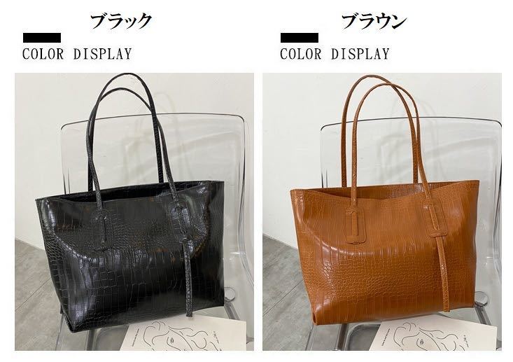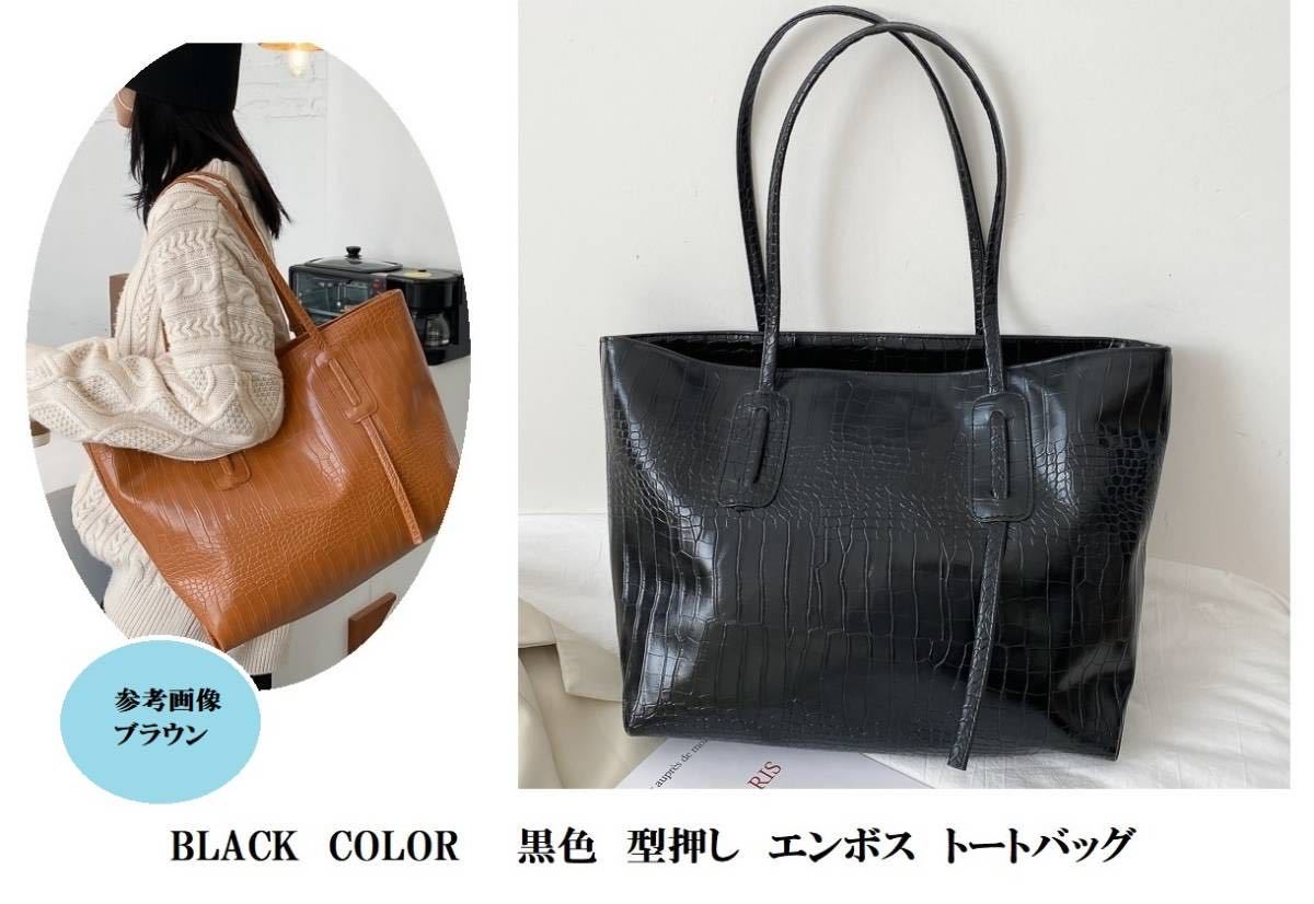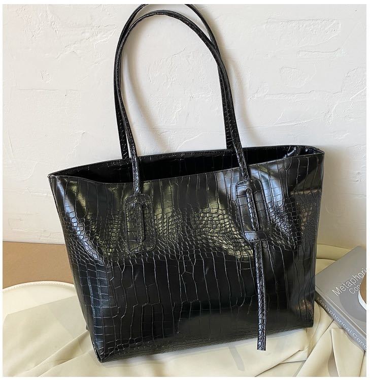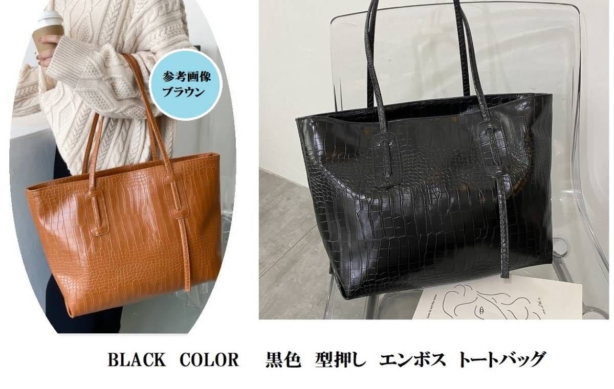 黒 ブラック トートバッグ レディースA4 ビッグサイズ パソコン クロコ型押し 鞄 かばん 大容量 軽量 防水