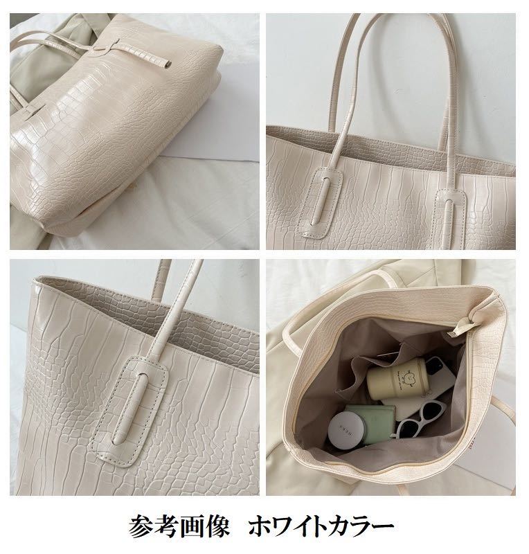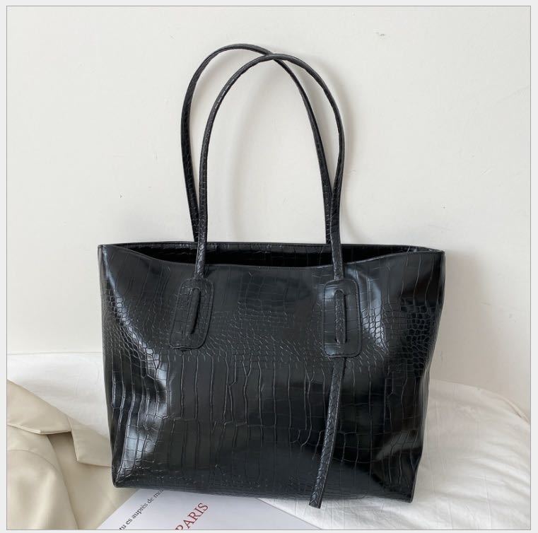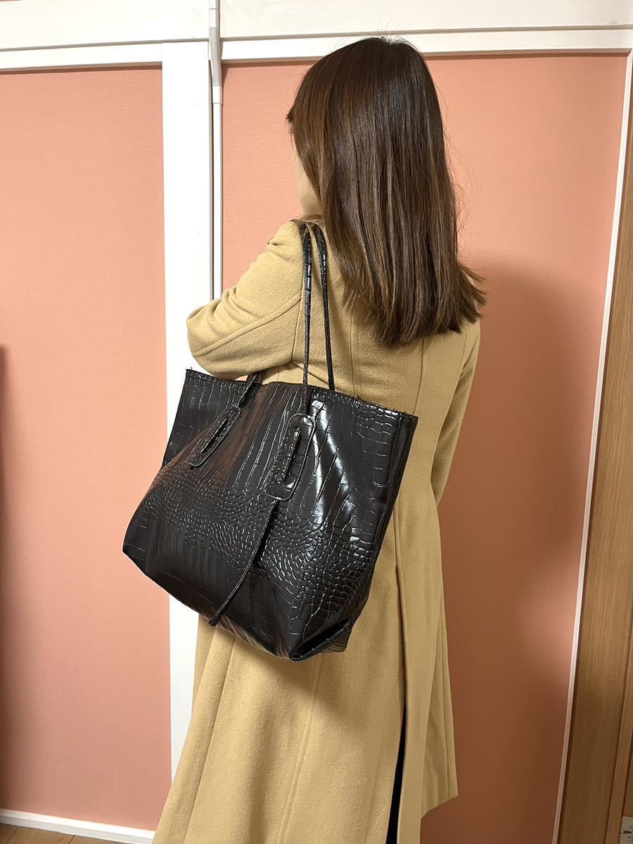 高級バッグに多く使われるクロコ素材を型押しで表現したPUレザートートバッグ。