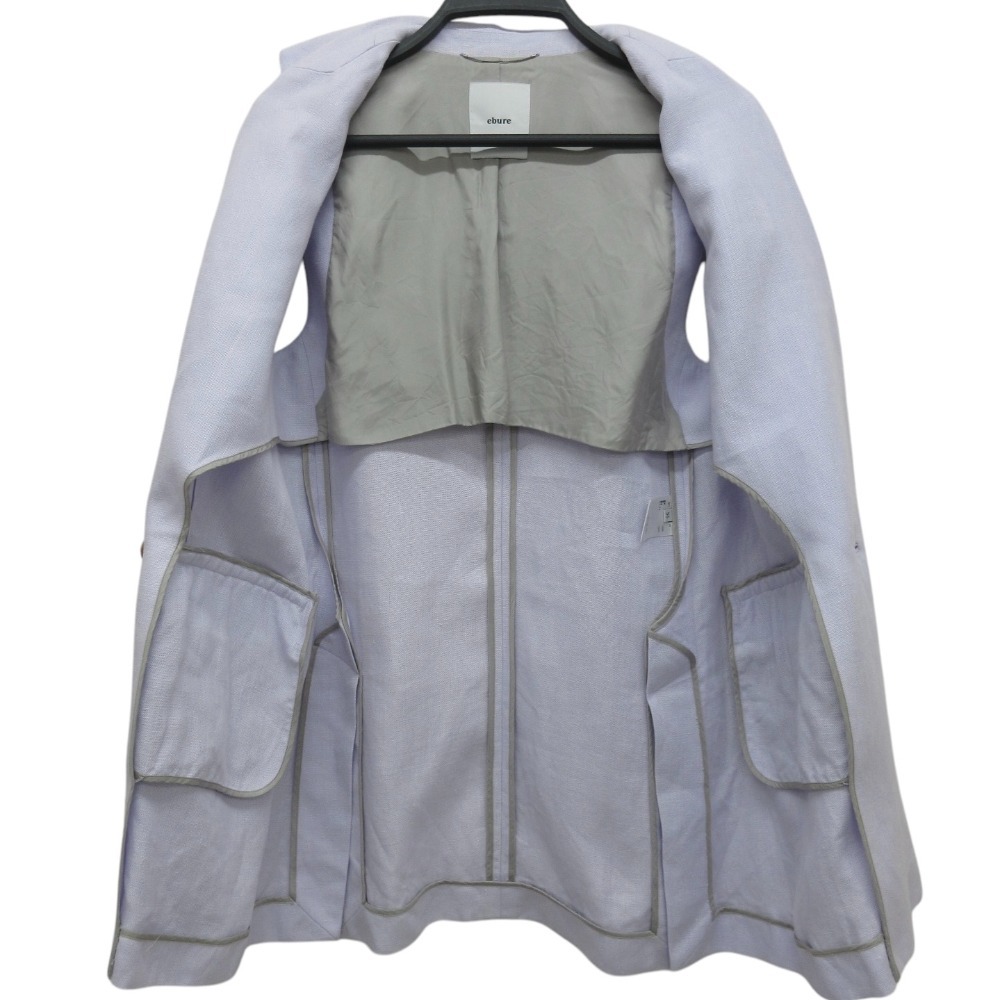 美品 22SS ebure エブール リネン100% 背抜き ジレ ベスト ノースリープジャケット コート 36 ライトパープル