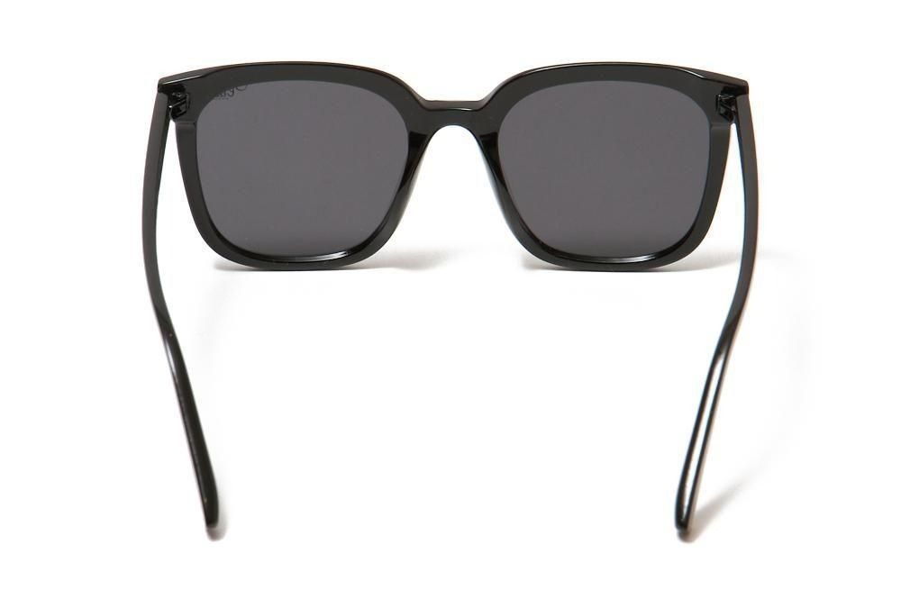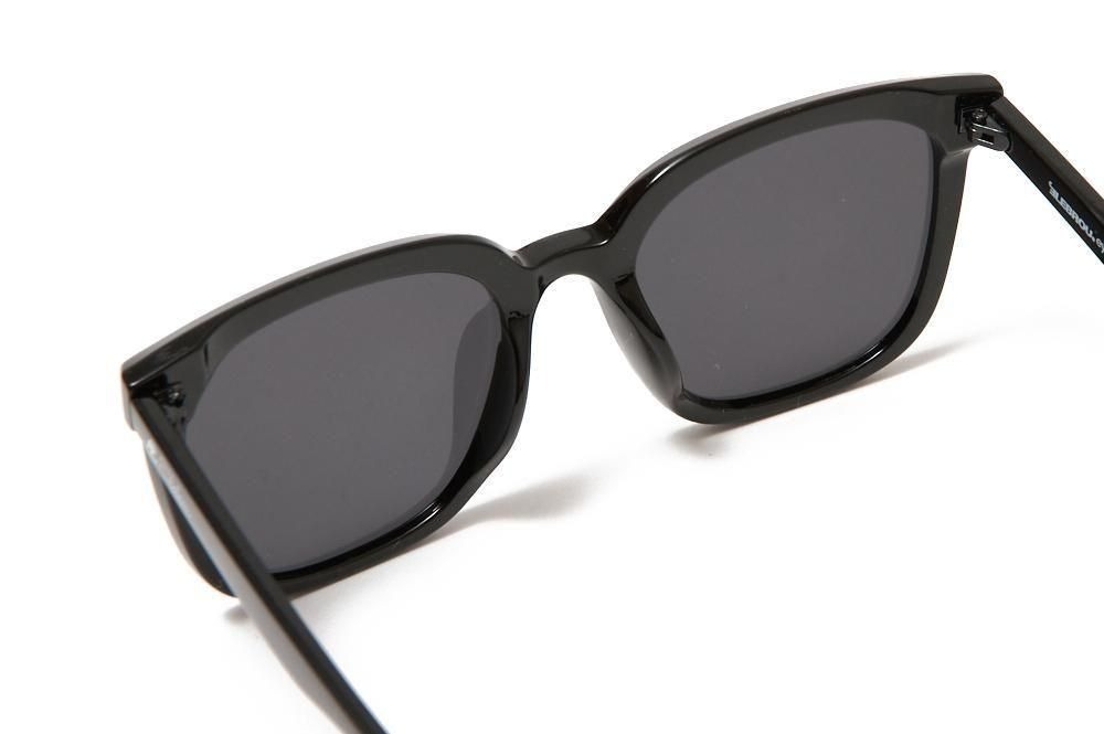 全体をマットに引き締めるブラックフレームに、クールなスモークUVカットレンズを搭載。