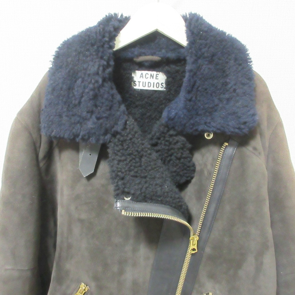 良品 Acne Studios アクネストゥディオズ オーバーサイズ ムートン ライダースジャケット VELOCITE PAW13 34 ブラウン×ブラック