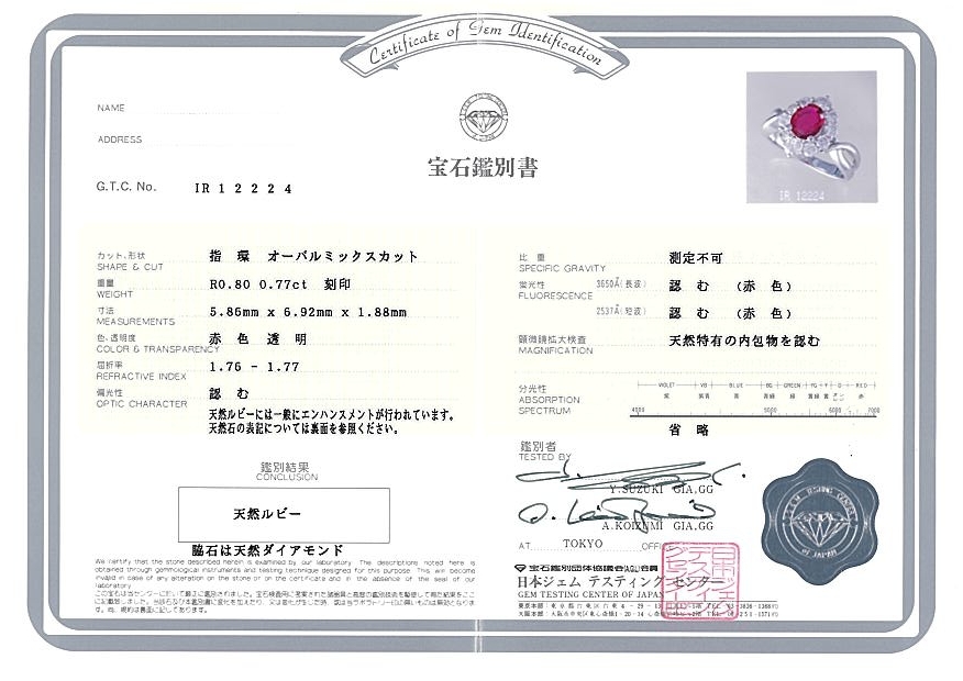 | 【商品ランク】 ※詳細はランク表をご確認下さい。 S 【ジャンル】 リング/指輪/ring 【ブランド】 三越/MITSUKOSHI/その他のブランド 【素材】 Pt900/プラチナ 【重量】 7.4g 【サイズ】 リングサイズ:14号 デザイン幅:約13.8mm リング腹側幅:約2.2mm 【石目】 ルビー:0.80ct サイズ:5.85×6.92×1.88mm ダイヤモンド:総計0.77ct 【付属品】 日本ジェムテスティングセンター発行の鑑別書 【商品状態】 新品仕上げ済み 【商品管理番号】 168429 |