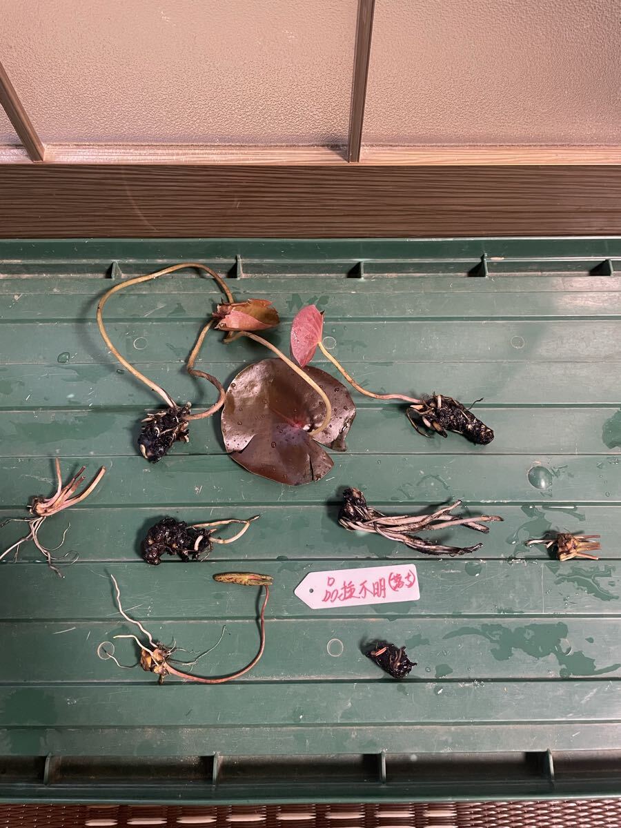 ご覧いただきありがとうございます。耐寒性睡蓮品種不明(札落ち)セット(8苗)の出品です。花は咲いてからのお楽しみ!になります。