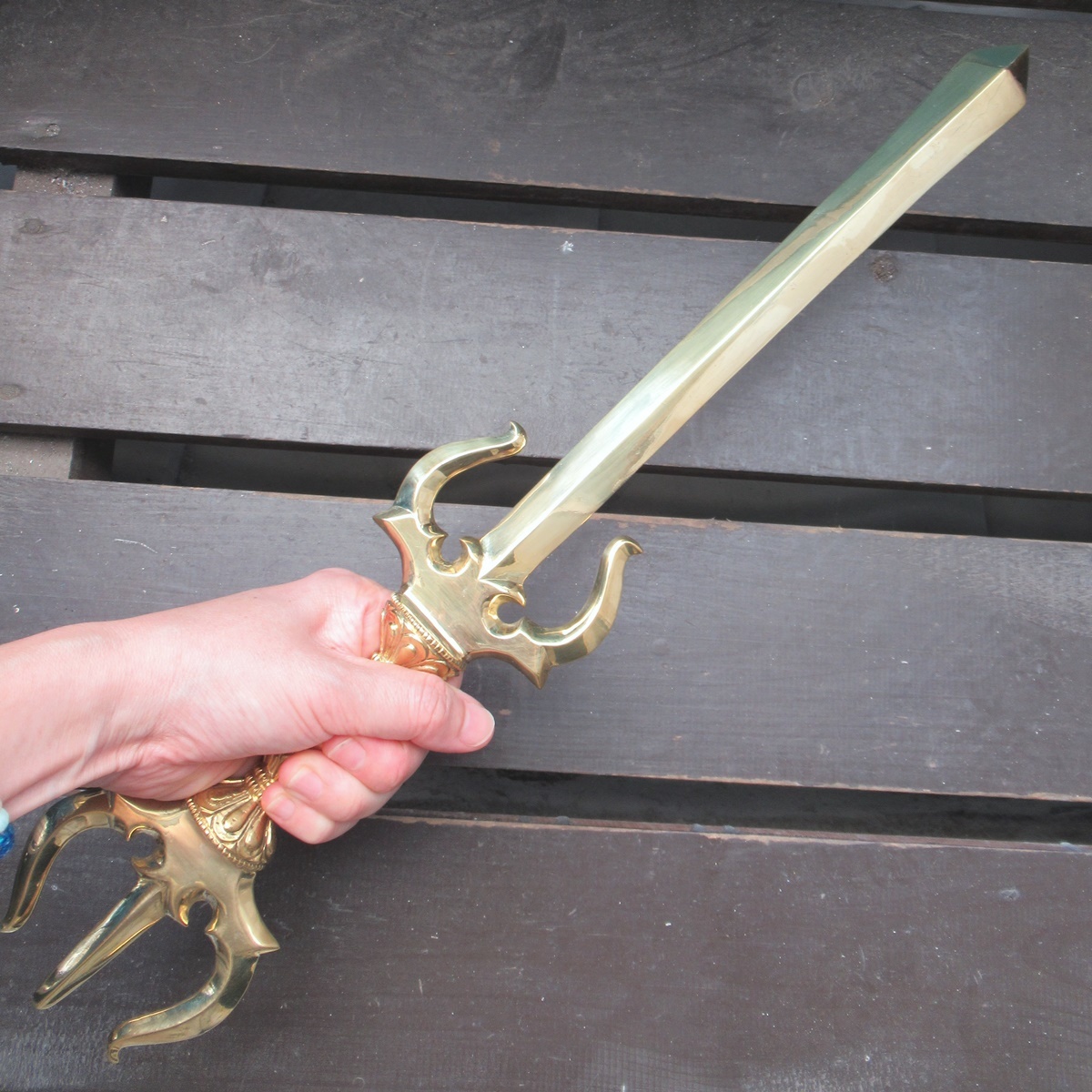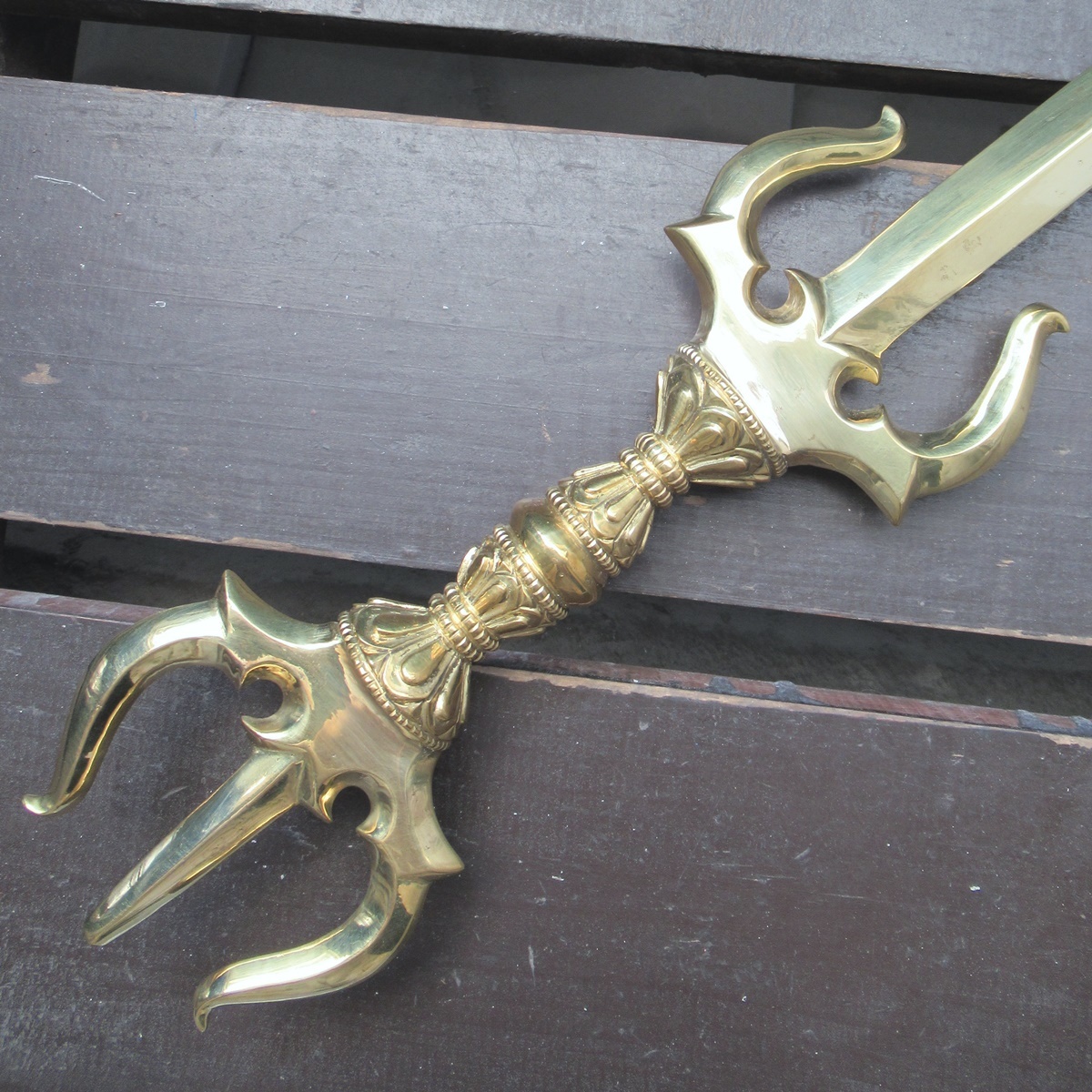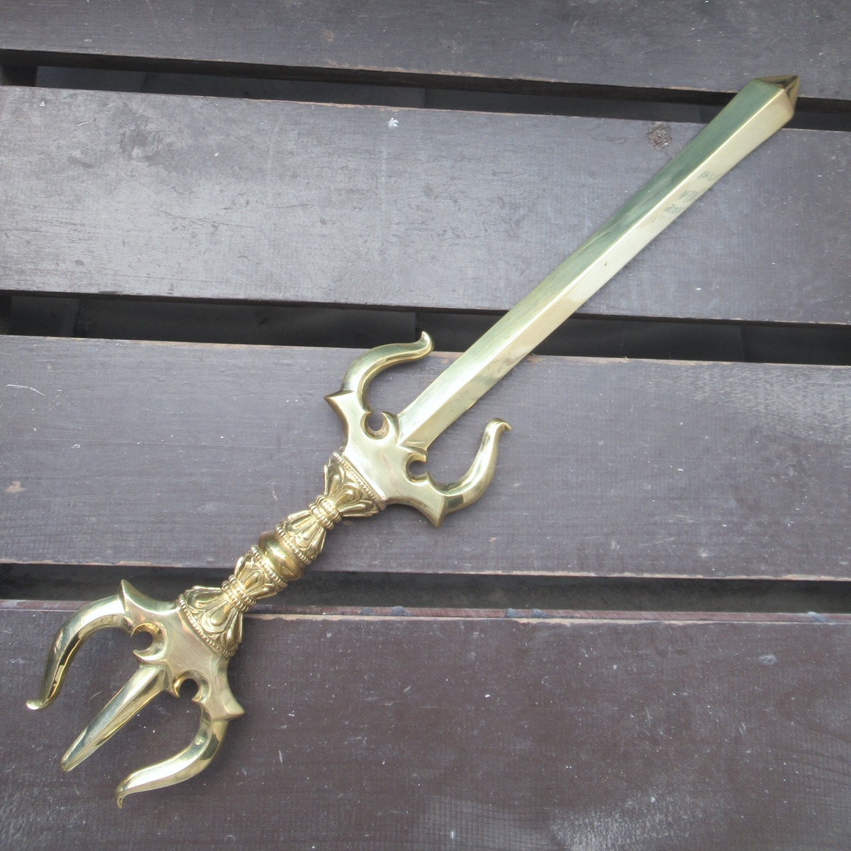 真鍮製 カドゥガ(利剣)・三鈷剣 46センチ 密教法具 仏具 不動明王 文殊菩薩