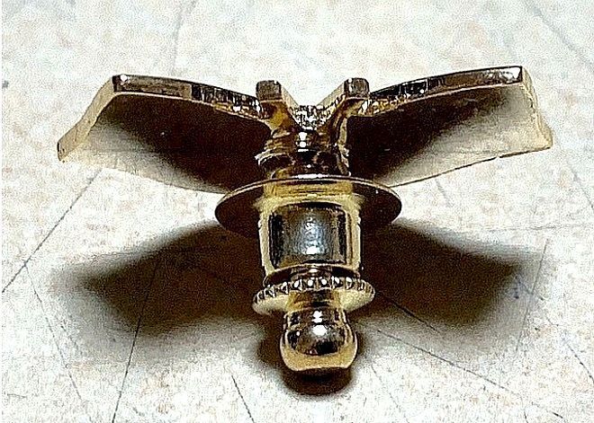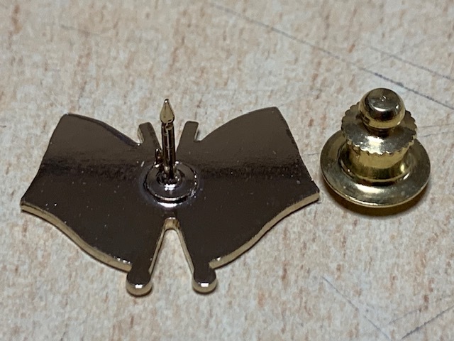 ●取り外しが簡単で、最近の社章などは、タイタック式の留め具が主流。1mm以下の細い針で穴はほとんど目立ちません。