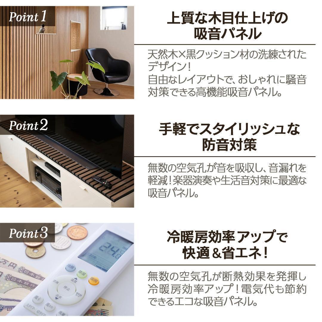 材質:天然木目の圧板 + 中密度繊維板 + 高密度吸音ポリエステル繊維