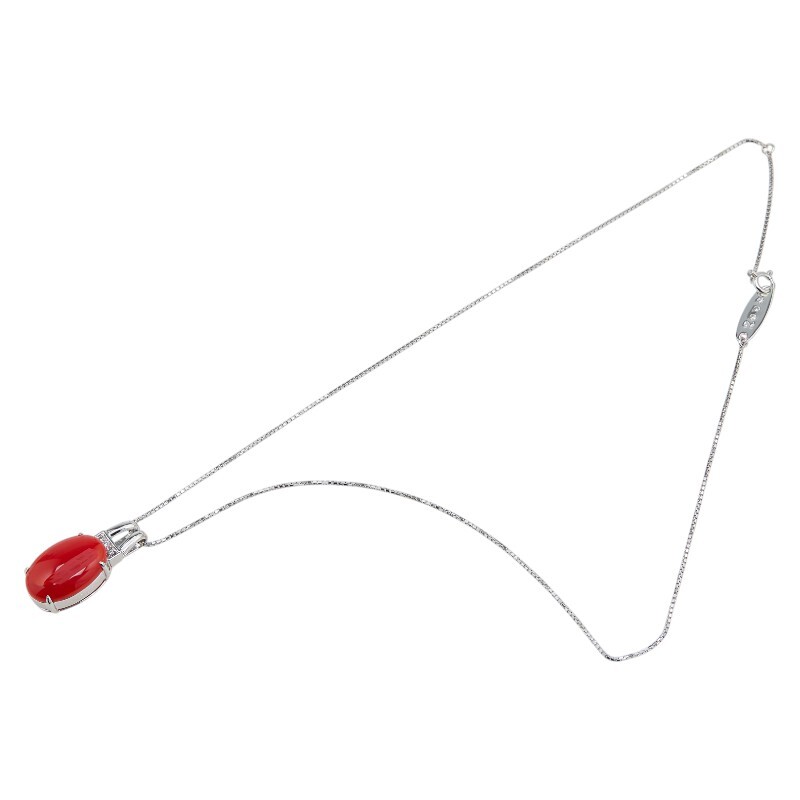 Pt900 プラチナ Pt850 プラチナ サンゴ ダイヤ0.06ct ペンダントネックレス レディース 中古