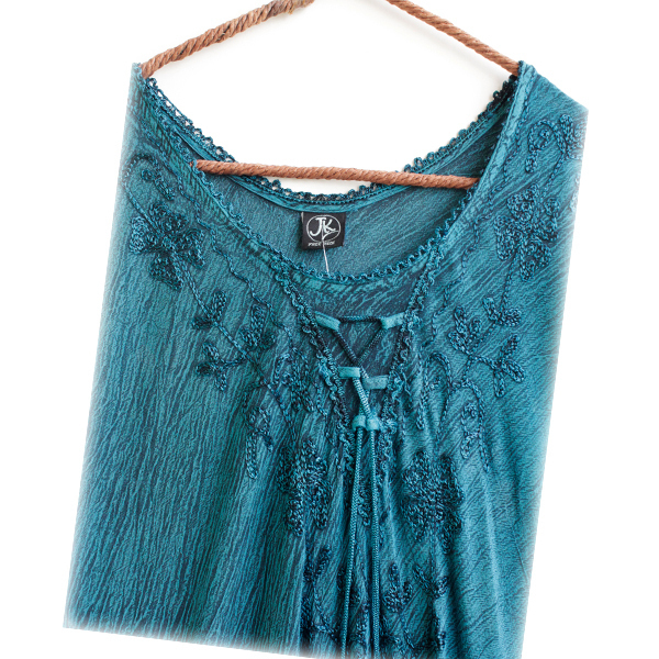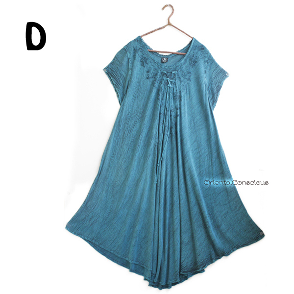 送料無料】楊柳ウォッシュ加工・胸元お花クロスステッチ刺繍・フレアワンピースD☆アジアンエスニック大きいサイズ可.