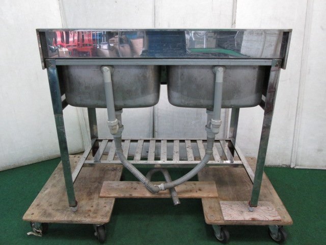 クリナップ 業務用 ステンレス 2槽 シンク バックガード付 個人様営業所止め(0821EH)7CC-1