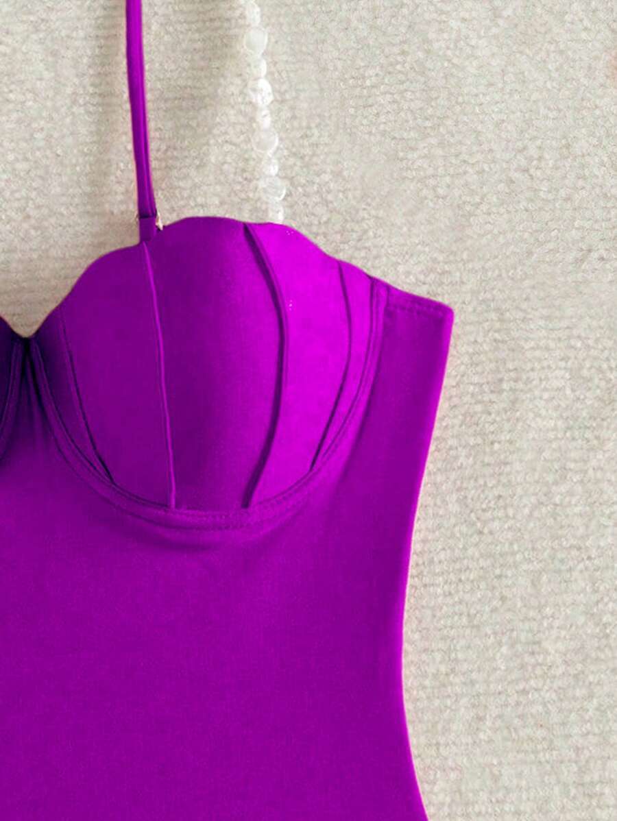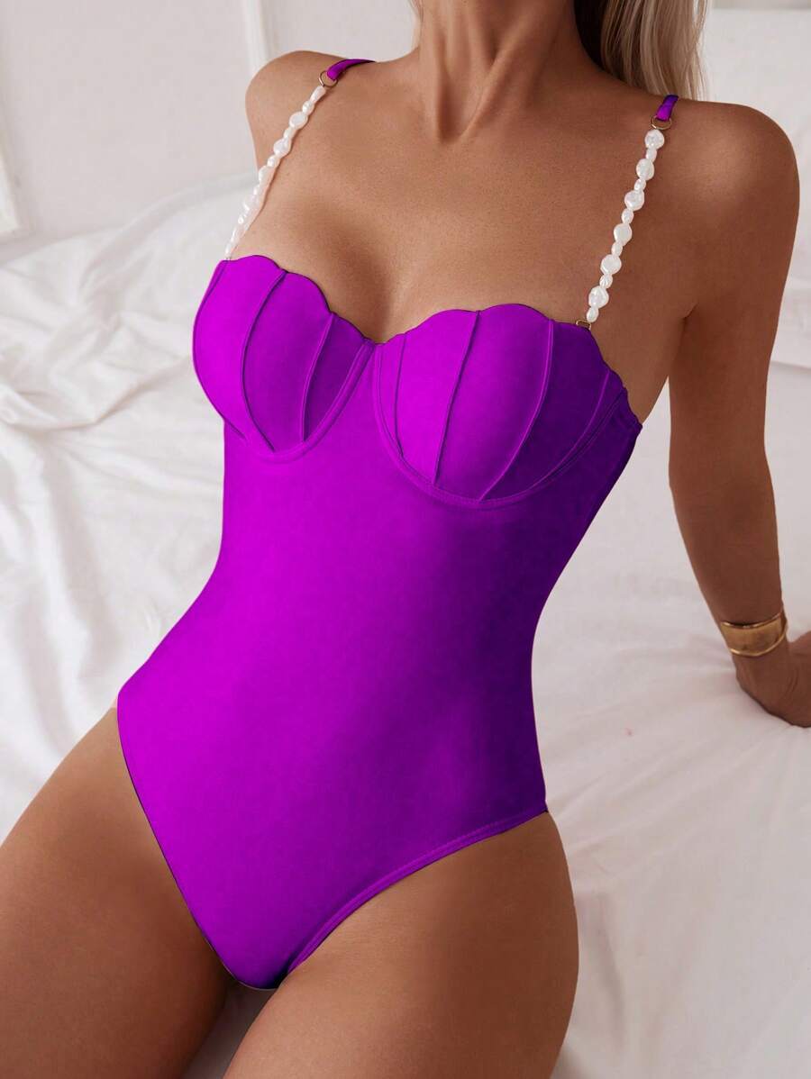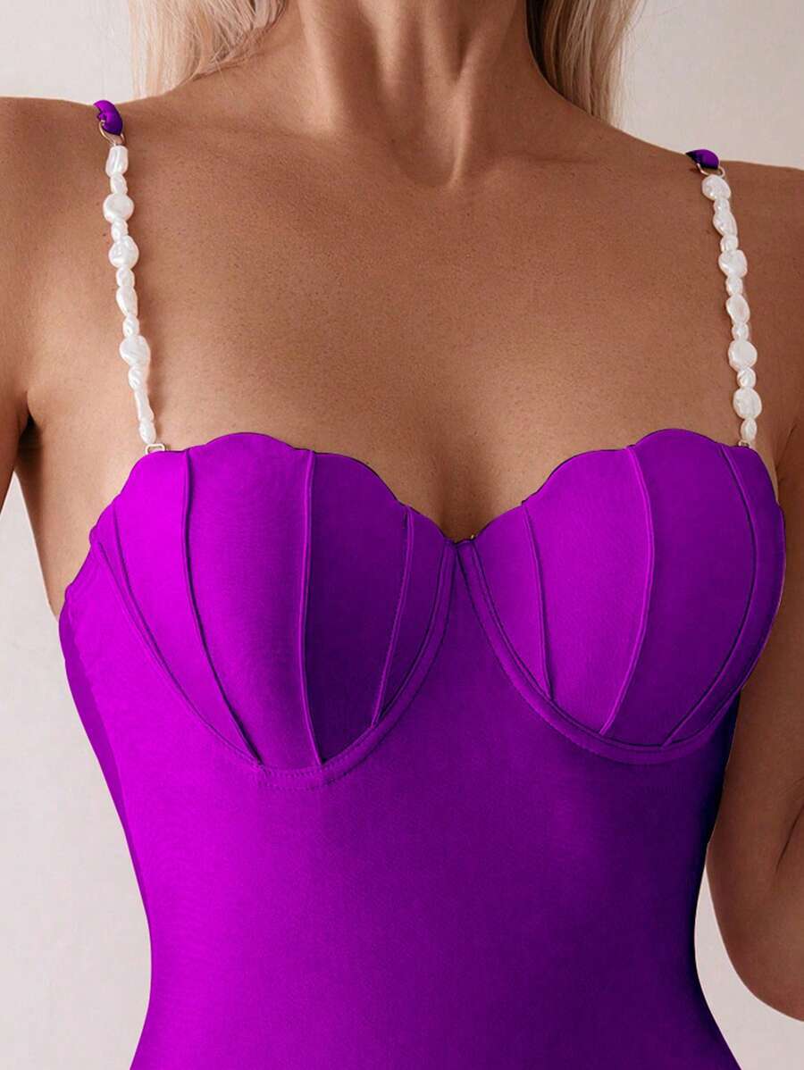 レディース 水着 ワンピース 装飾ディテール付き レディース ノースリーブワンピース水着、スリムフィット サマー