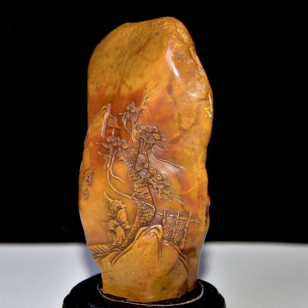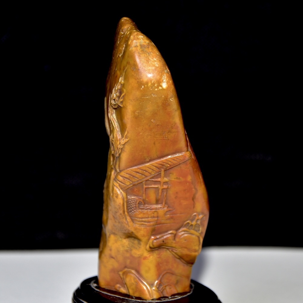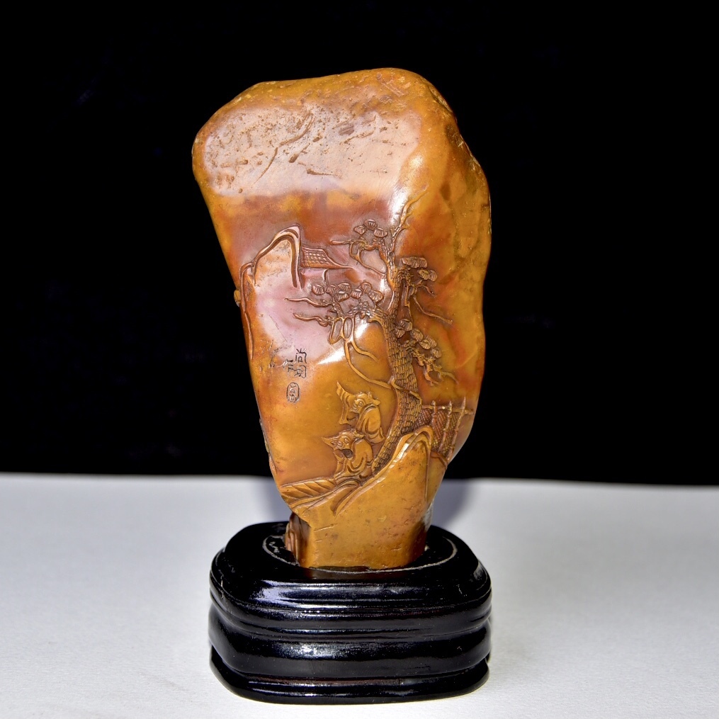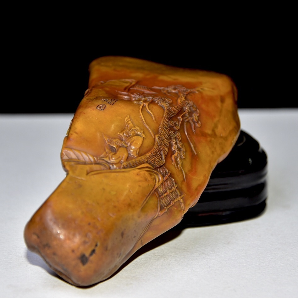 唐物 【清代篆刻家 周彬 字:尚均】寿山石 田黄石 置物 原石原色 天然石 手彫 篆刻 極細工 中国古玩 骨董品 古美味 D68