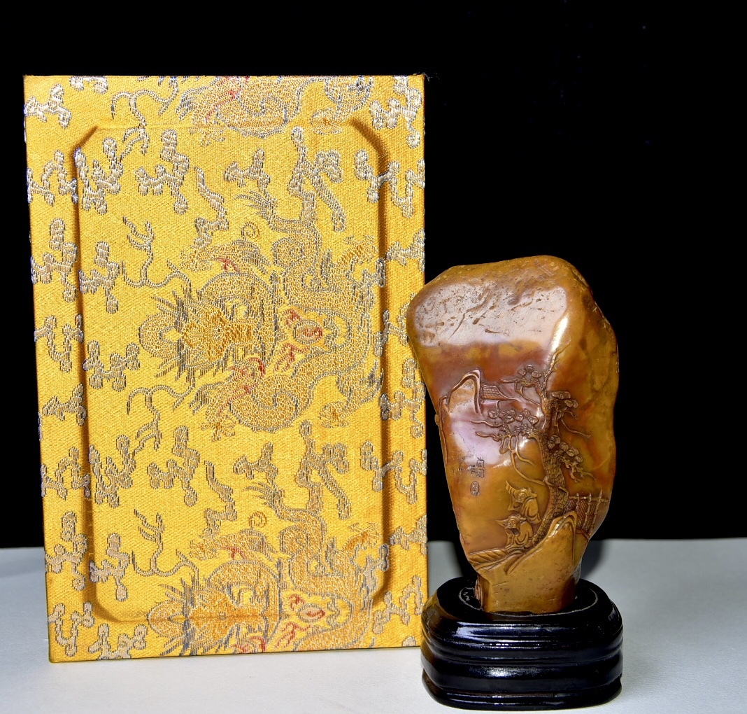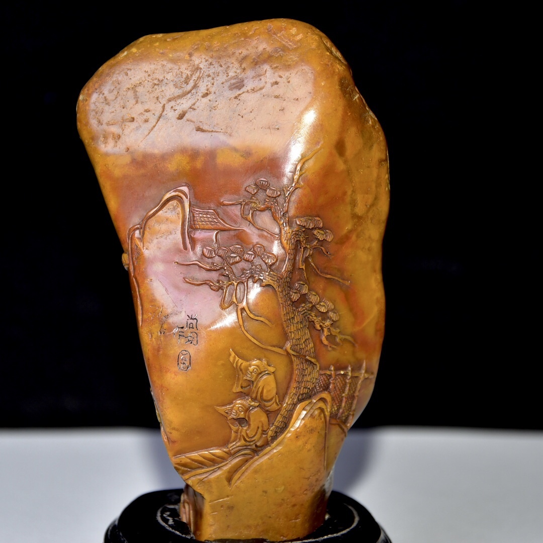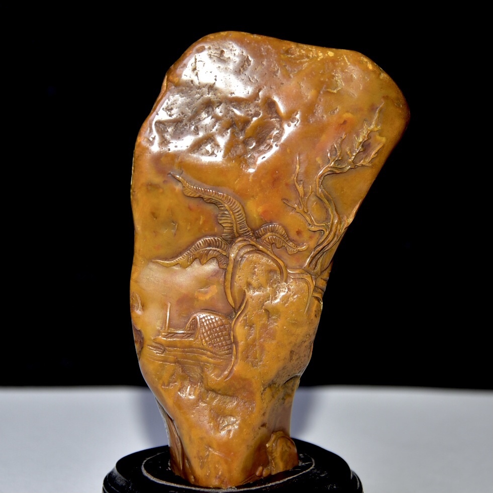 唐物 【清代篆刻家 周彬 字:尚均】寿山石 田黄石 置物 原石原色 天然石 手彫 篆刻 極細工 中国古玩 骨董品 古美味 D68