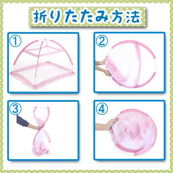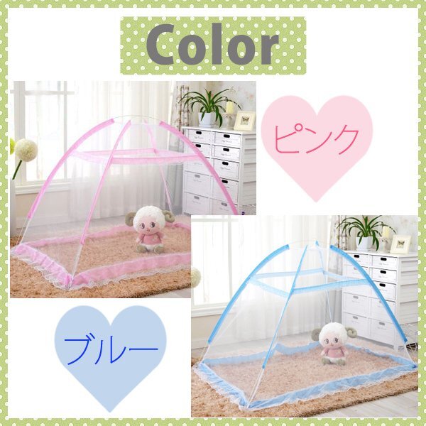 送料無料 ベビー用蚊帳(レースタイプ) 選べるカラー ピンク,ブルー 出産祝い ベビーベッド ワンタッチ コンパクトタイプ 軽量 ベビー蚊帳