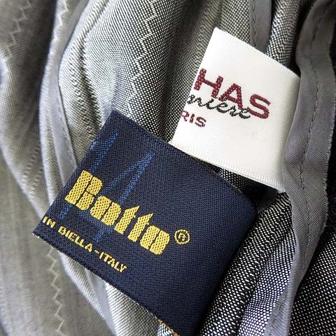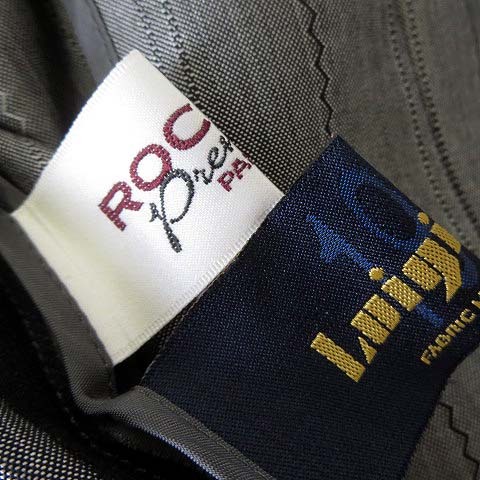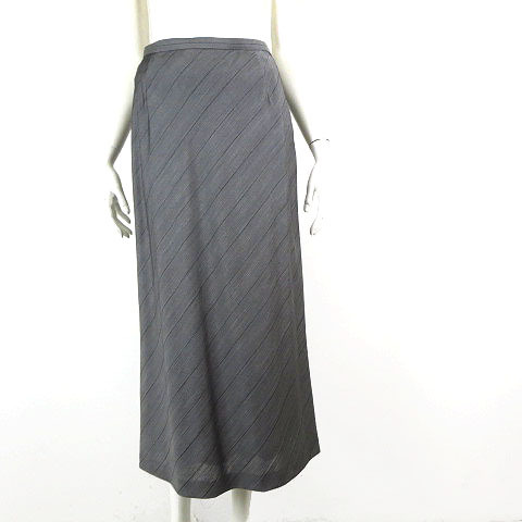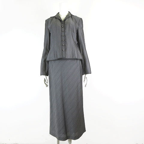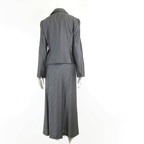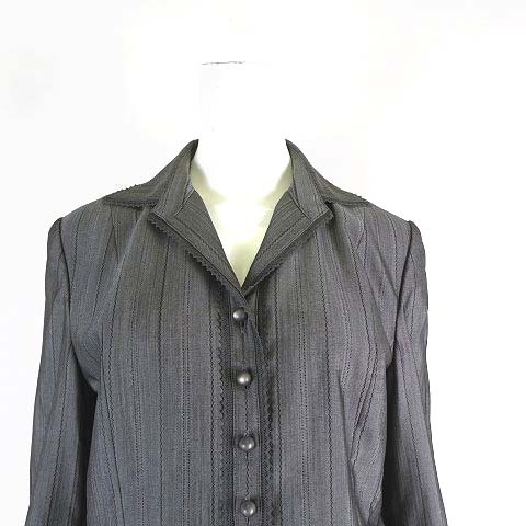 ロシャス レリアン イタリア Luigi Botto生地 スカートスーツ 上下セットアップ ストライプ ウール シルク レース フリル M 9 グレー 黒