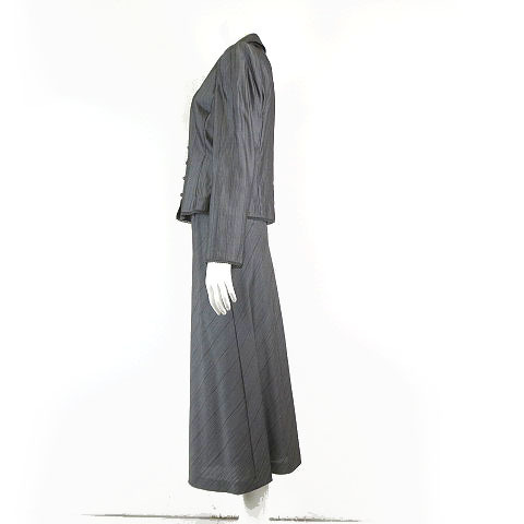 【仕様】◆イタリアLuigi Botto(ルイジボット)社の最高級シルク×ウール素材を使用した合い物の上下セットアップになります。 ◆ジャケットは襟、前立て、袖にレース装飾付き、裏地なし。スカートはロング丈で裏地あり、サイドに着脱用ファスナーがあります。