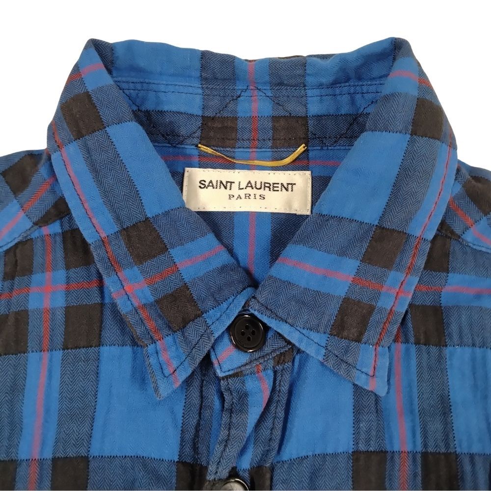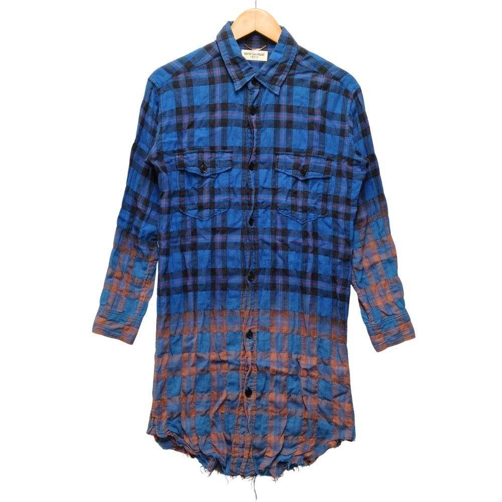 商品名 SAINT LAURENT PARIS サンローランパリ 品番 420248 グラデーション ロング チェック 長袖シャツ ブルー サイズ XS 正規品 / 51979