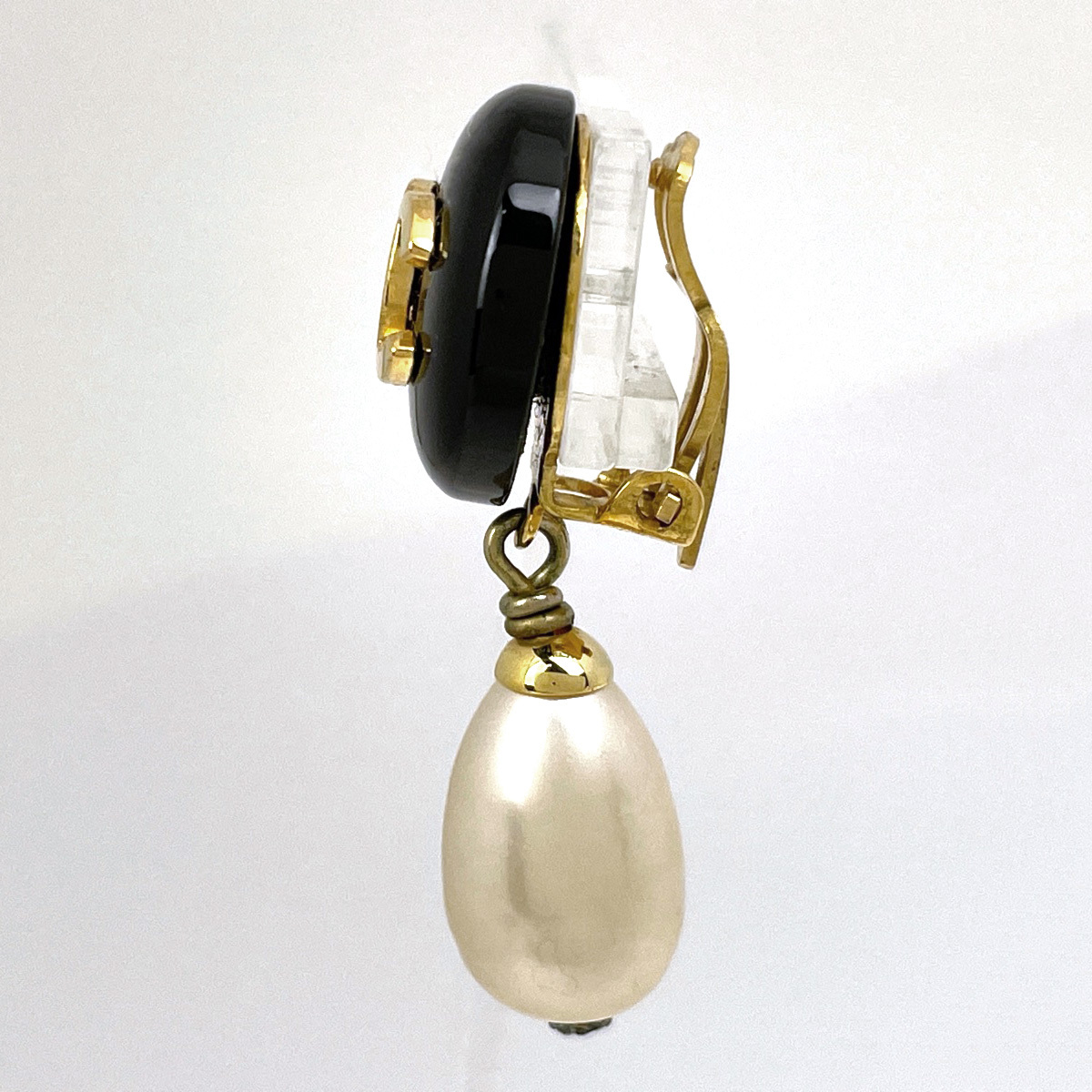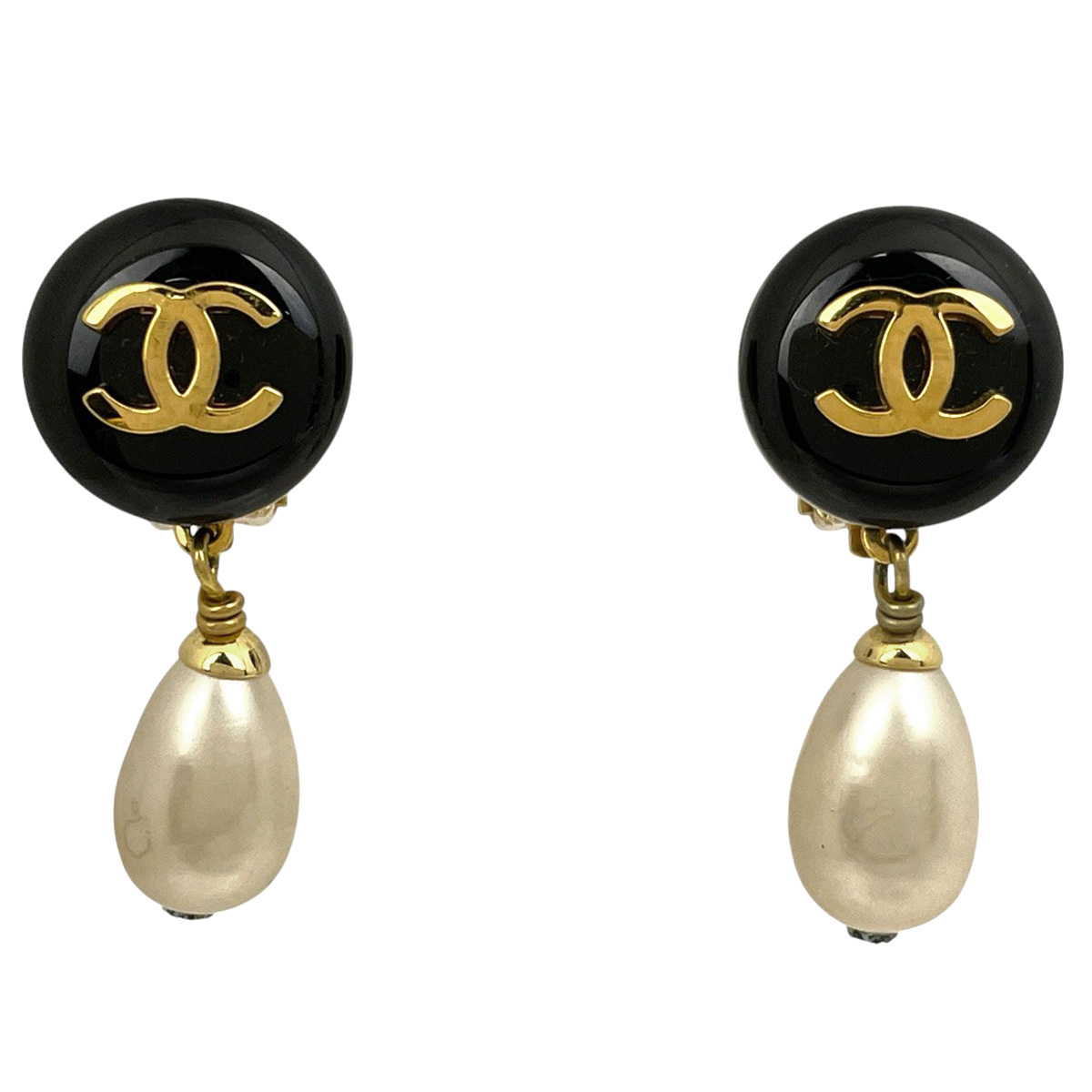 | シャネル CHANEL ココマーク フェイクパール イヤリング スイング イヤリング GP ゴールド ブラック レディース 【中古】 |