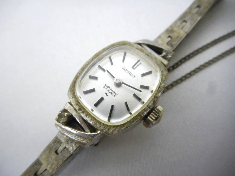 腕時計 SEIKO special セイコースペシャル 23石 レディース 手巻き 1140-3090 動品 現在動いています。 日差1分程度ございます。 風防に傷ございます。 傷や汚れなどございます。 ケース幅 約16mm(リューズ含まず) カン幅 約6mm 腕まわり 約16cm (素人計測になりますので誤差はご容赦ください) 写真をよくご確認の上、ご検討宜しくお願い致します。 | ||